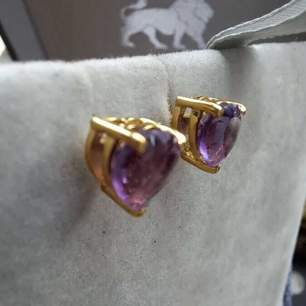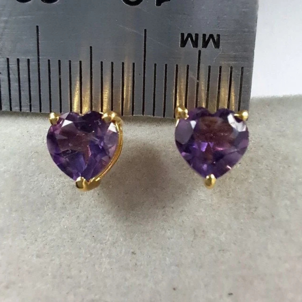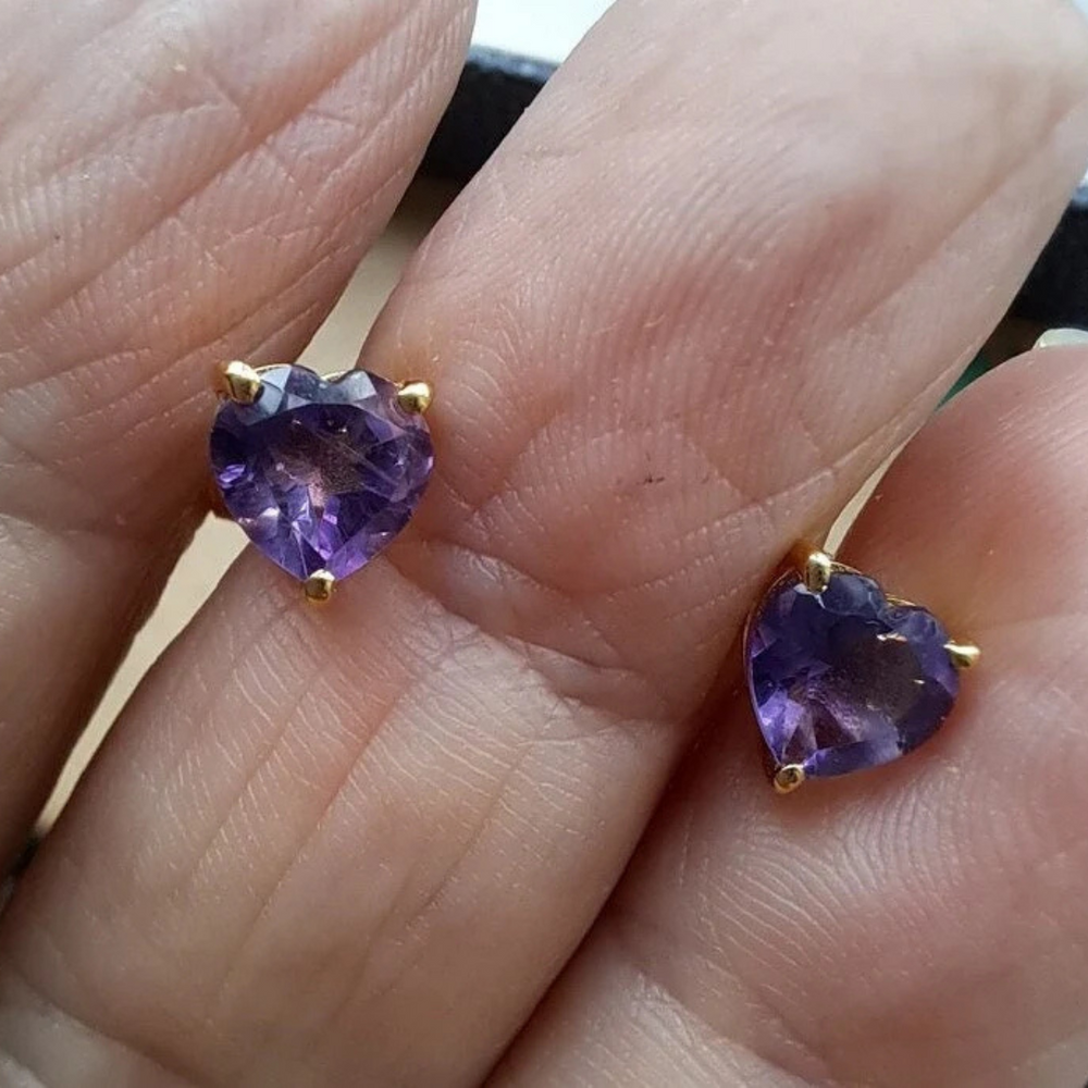 Amethyst Heart Earrings, 18k Gold Earrings, Amethyst Gemstone Earrings, Stud For Women