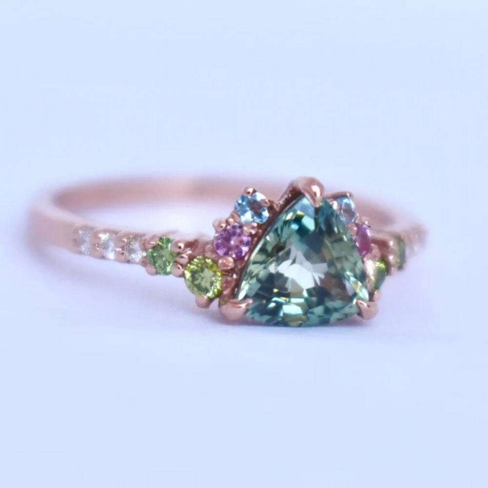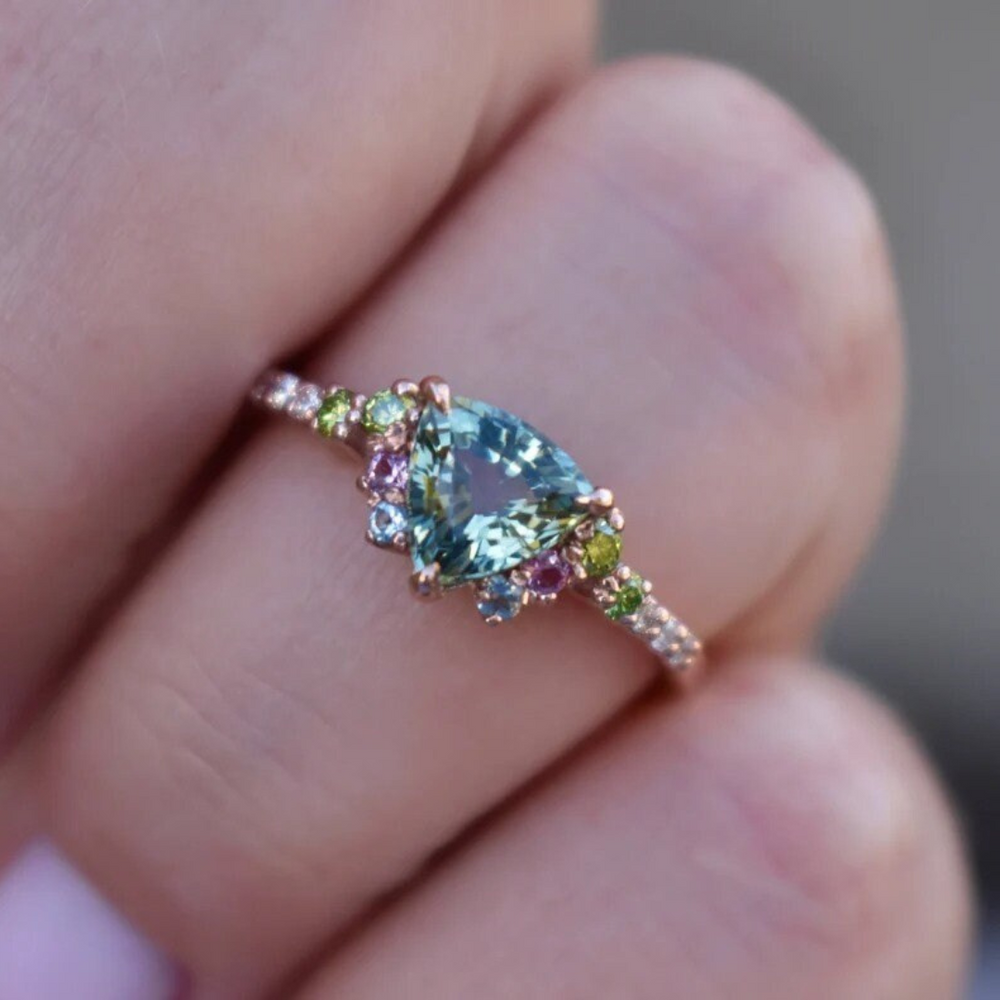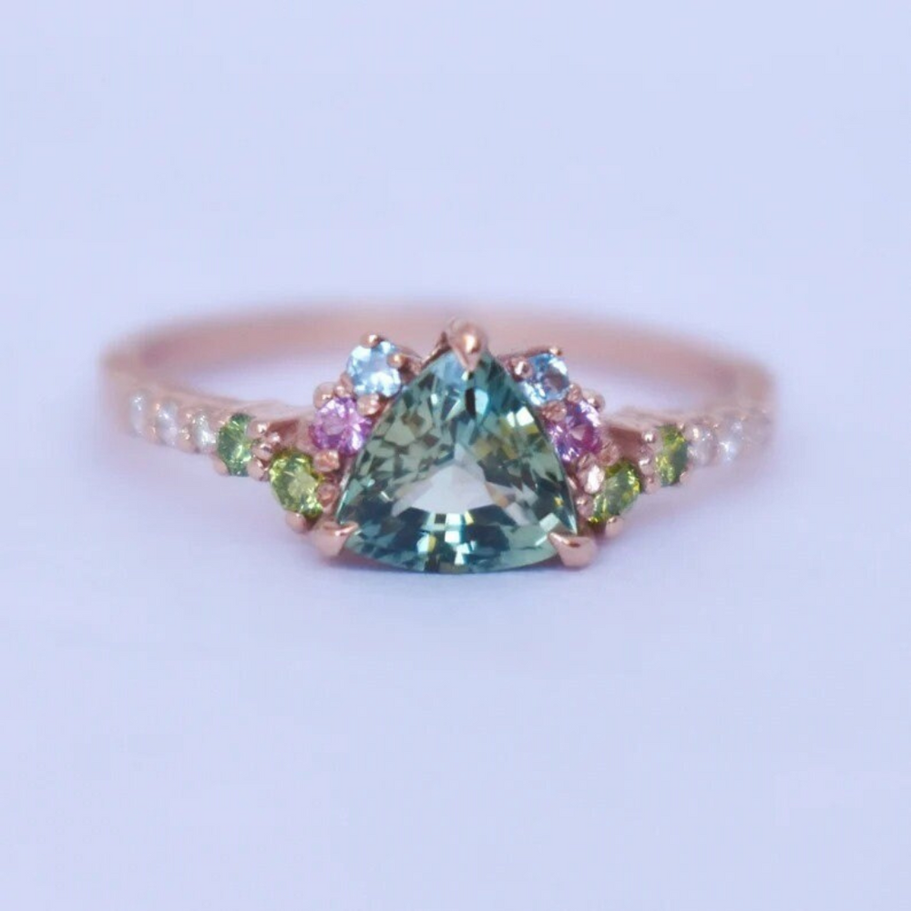 Aquamarine Gold Ring, Natural Multi Gemstone Ring, Handmade Special Gorgeous Ring
