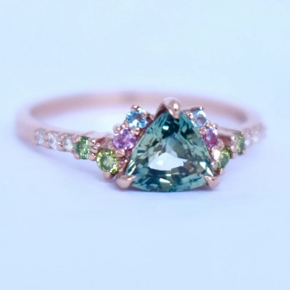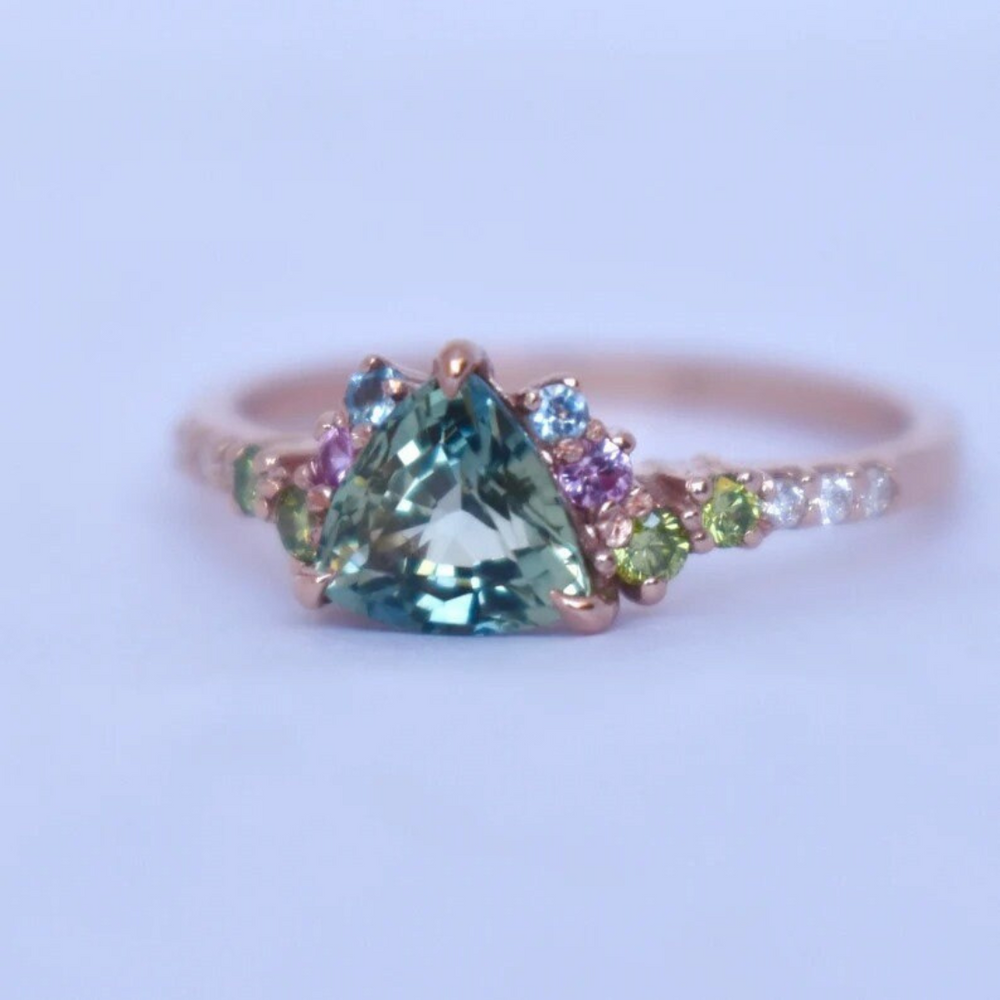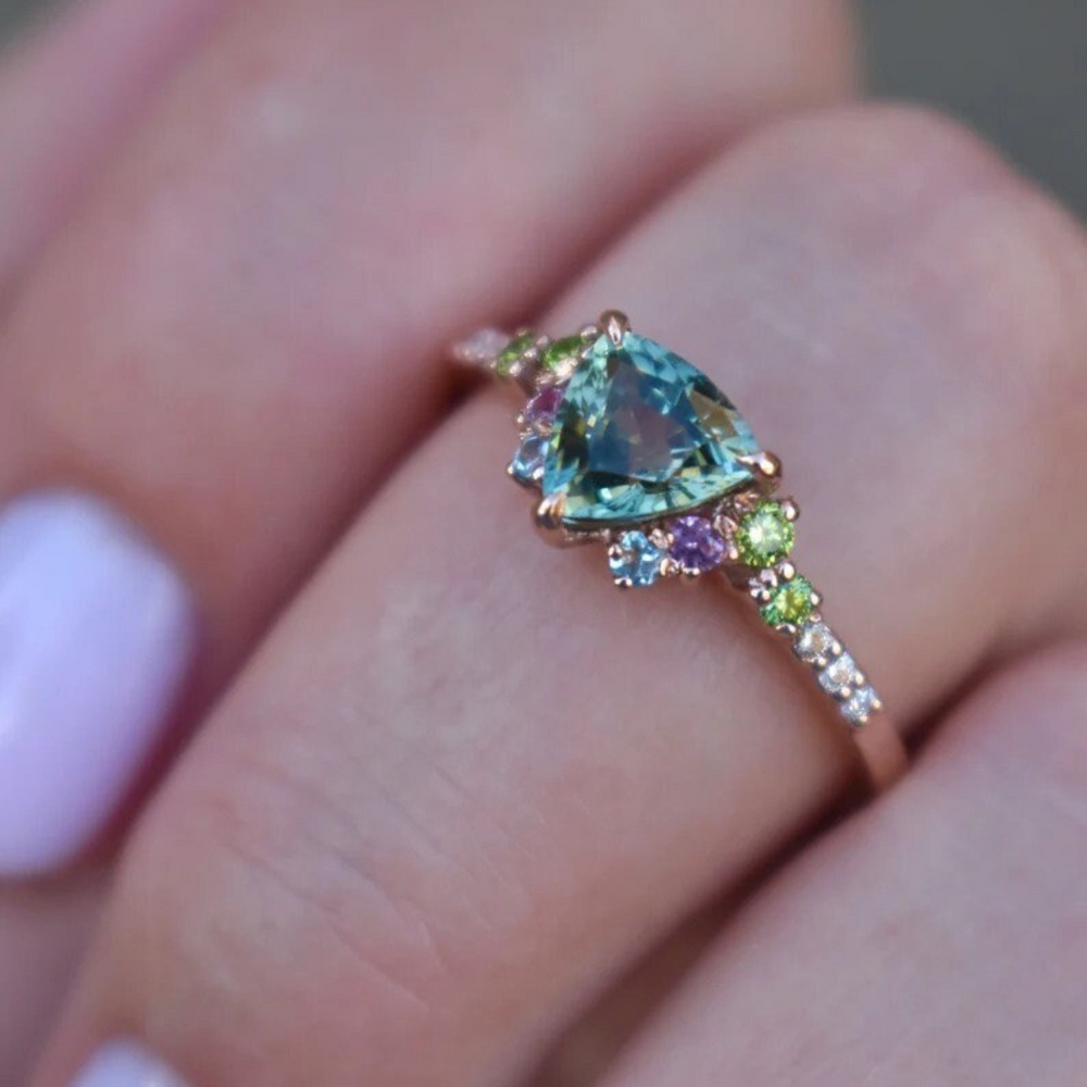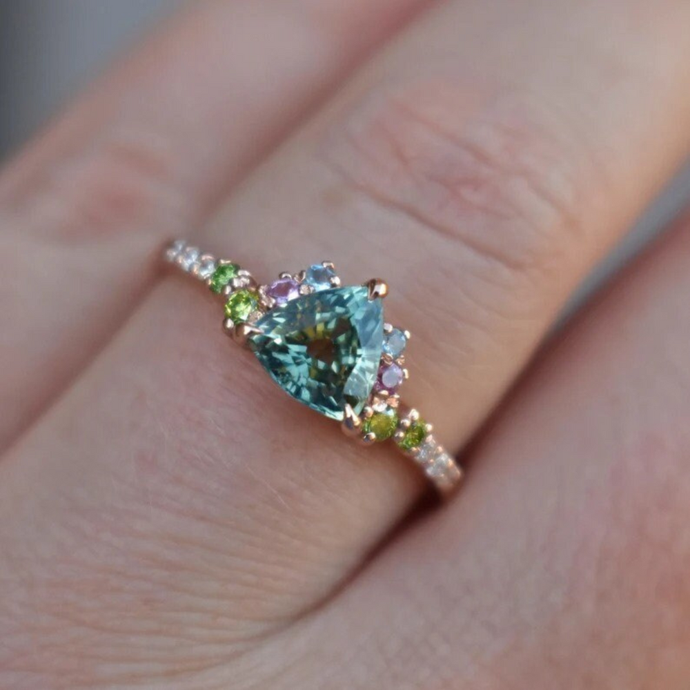 Aquamarine Gold Ring, Natural Multi Gemstone Ring, Handmade Special Gorgeous Ring