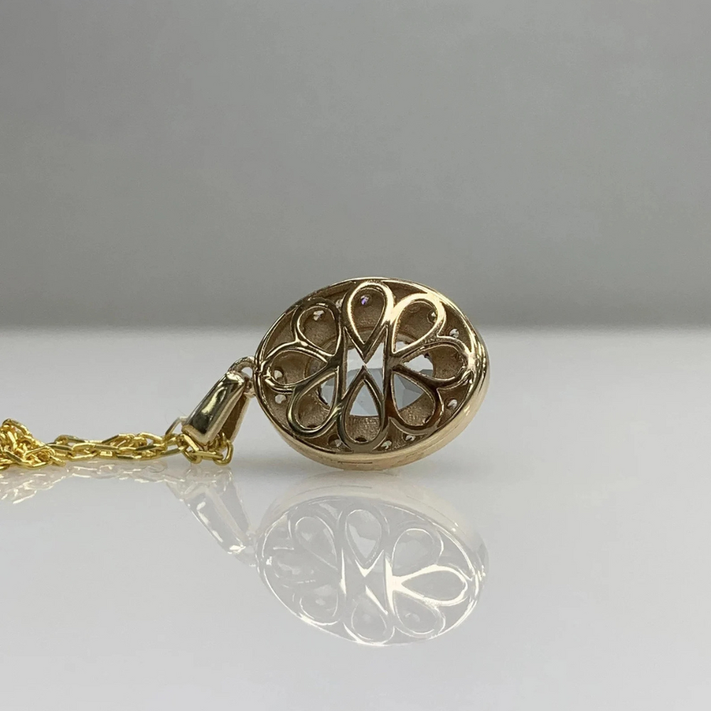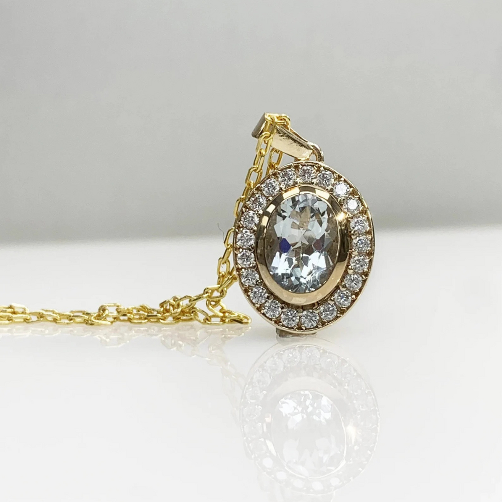 Aquamarine Pendant, White Moissanite Pendant 18k Gold Pendant Gemstone Pendant Special Gold Jewelry