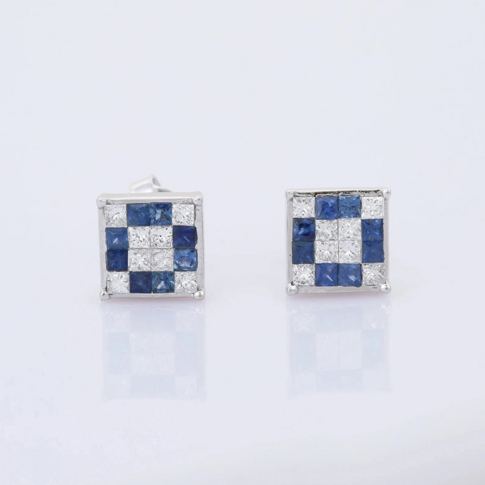 Blue Sapphire Stud Earring White Moissanite Earring 18k White Gold Earring Blue Sapphire And Moissanite Gemstone Earring Special Jewelry