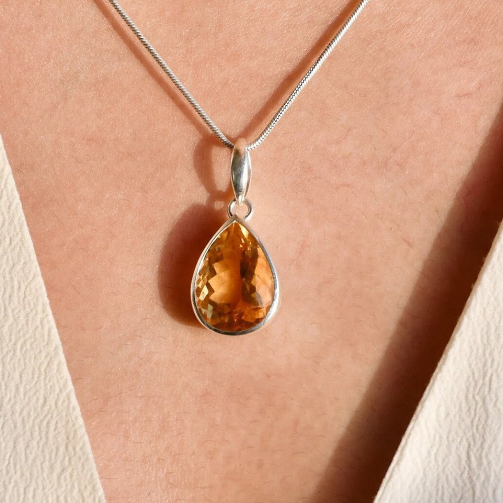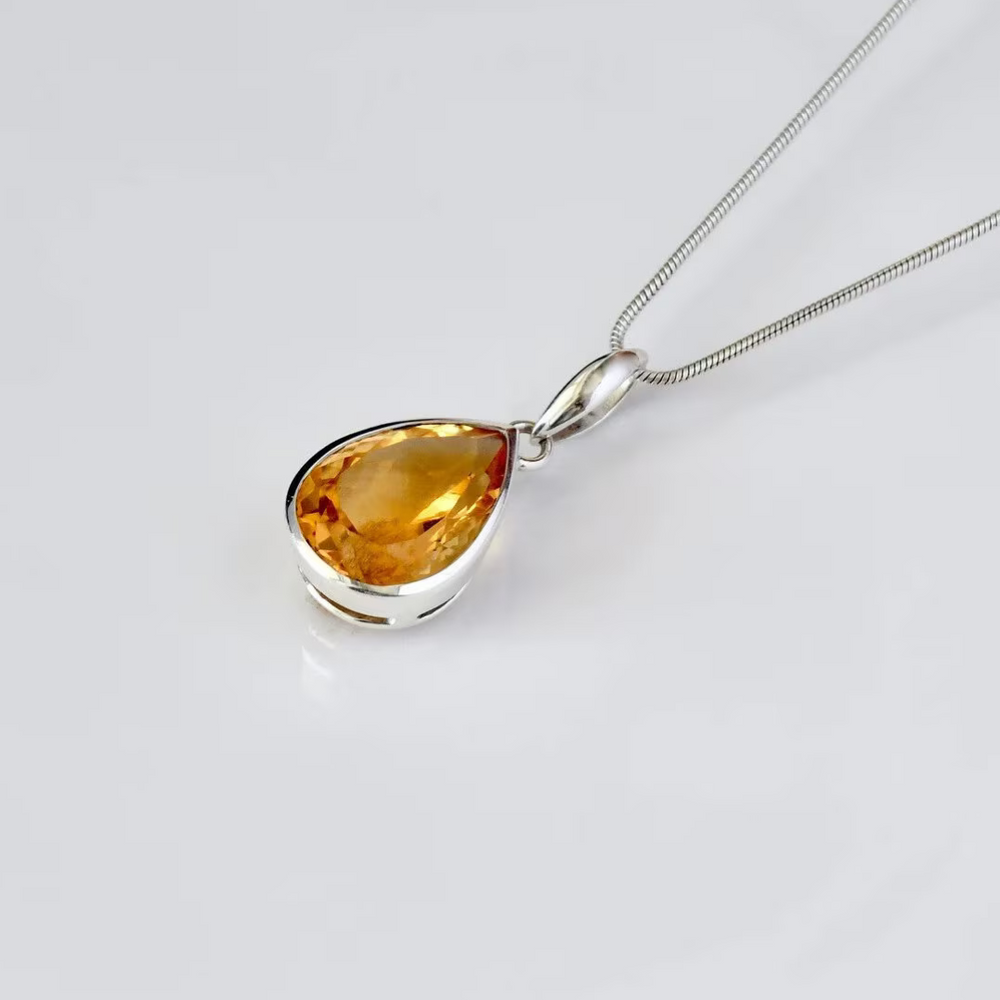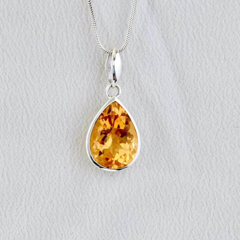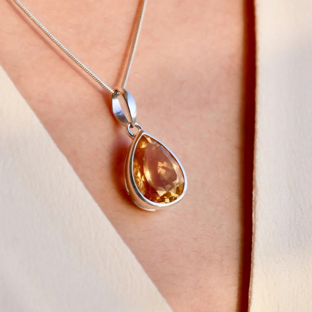 Citrine Pendant 18k White Gold Pendant Citrine Gemstone Pendant Special Gift For Her Wedding Pendent Promise Pendent Gift For Her.