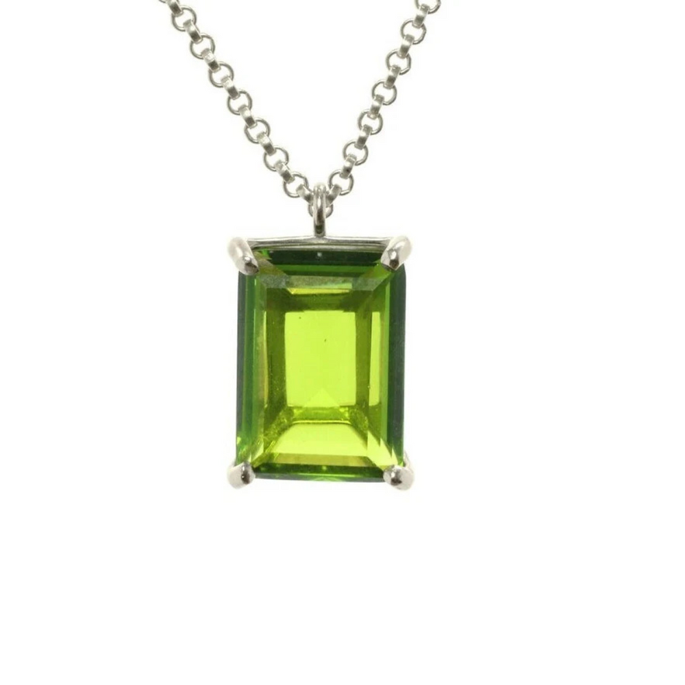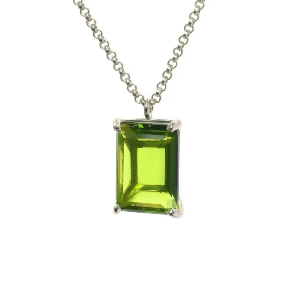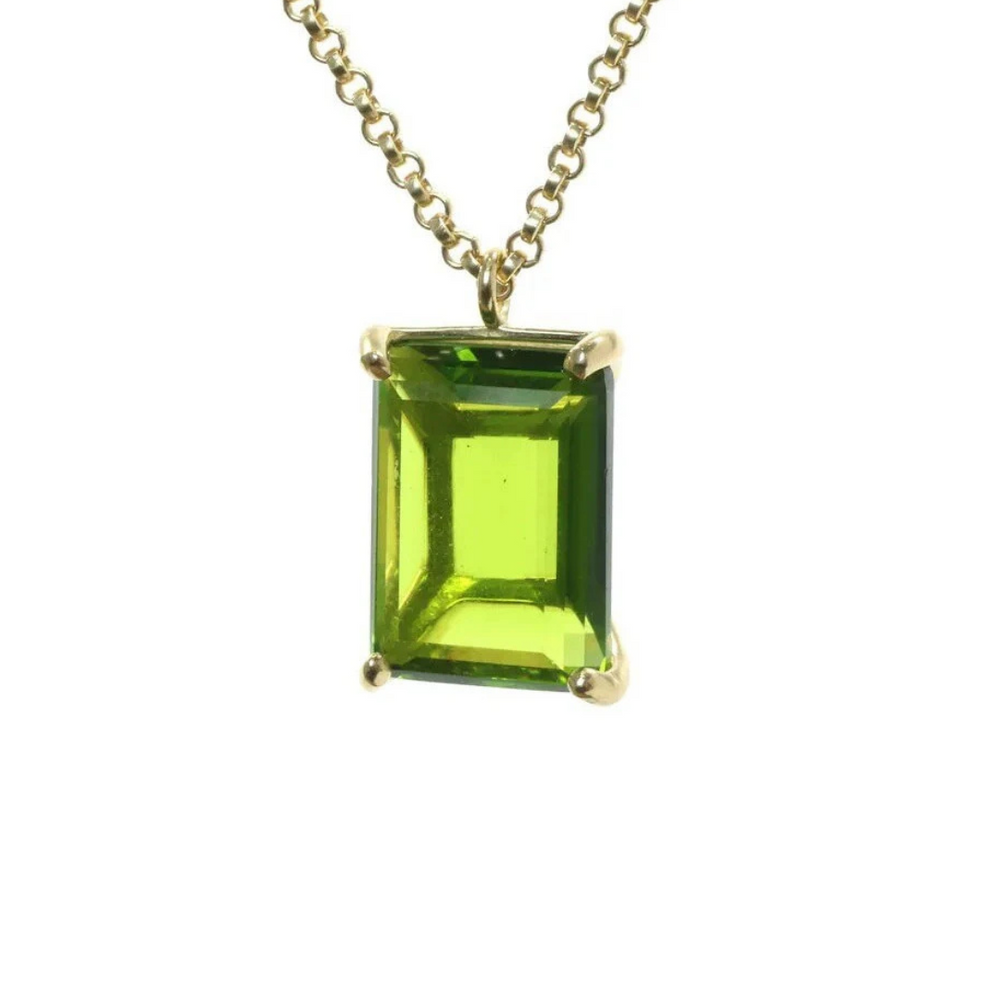 Dainty Peridot Octagon Shape Pendant Necklace · Gold Peridot Necklace · August Birthstone Necklace · 18k Gold Green Gemstone Necklace