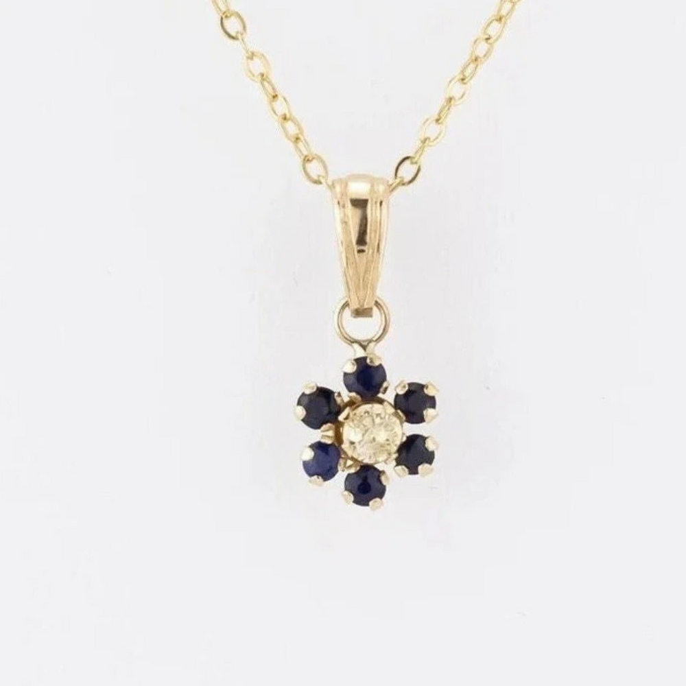 Dark Blue Sapphire Pendant, 18k Gold Pendant Sapphire And White Moissanite Gemstone Pendant Special Gold Jewelry