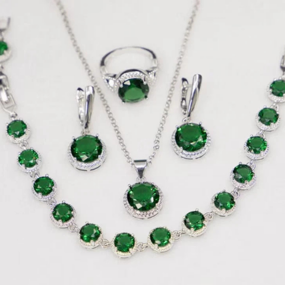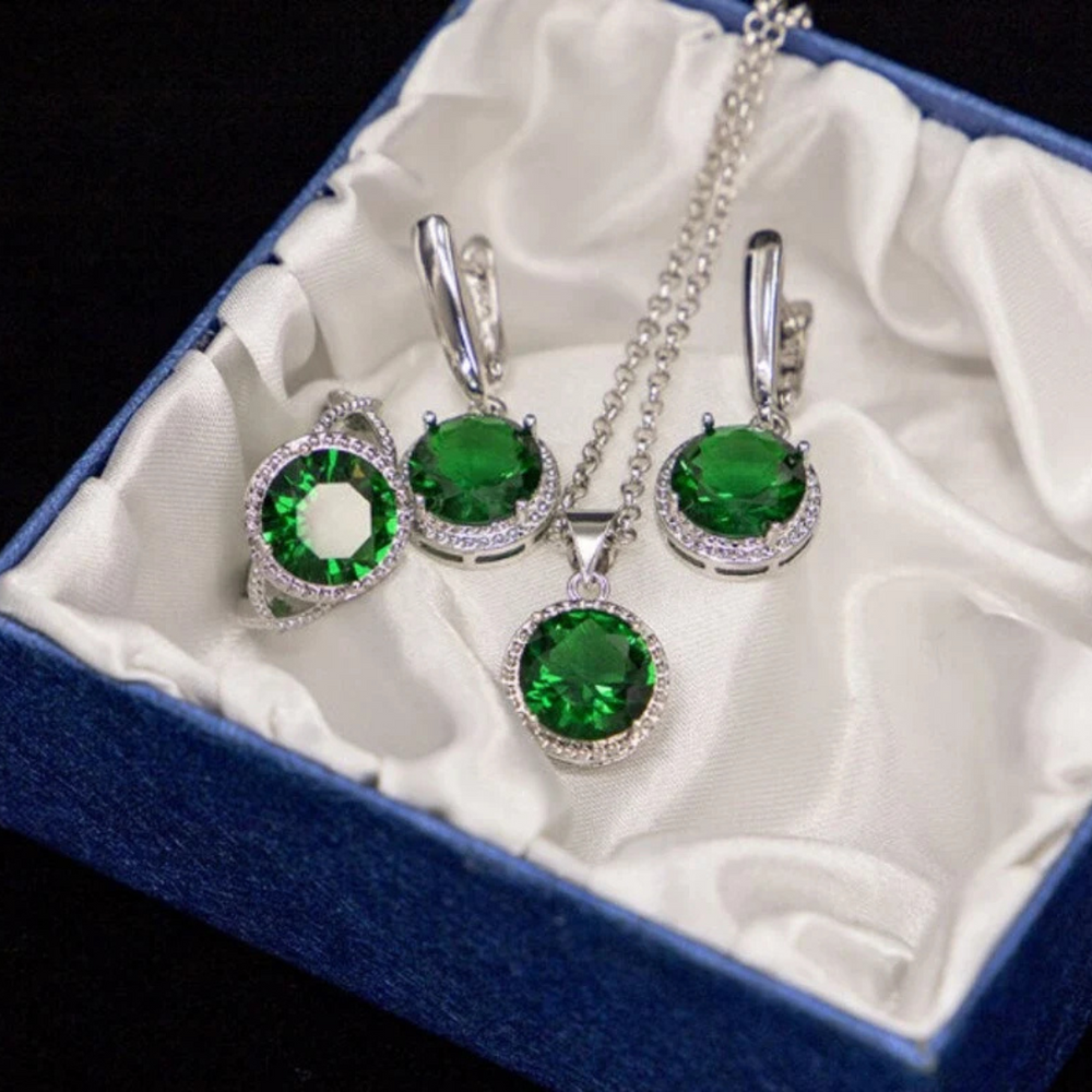 Emerald And Moissanite Jewelry Set 18k Gold Jewelry Set Ring, Pendant, Earing, Bracelet Gemstone Jewelry Set Special