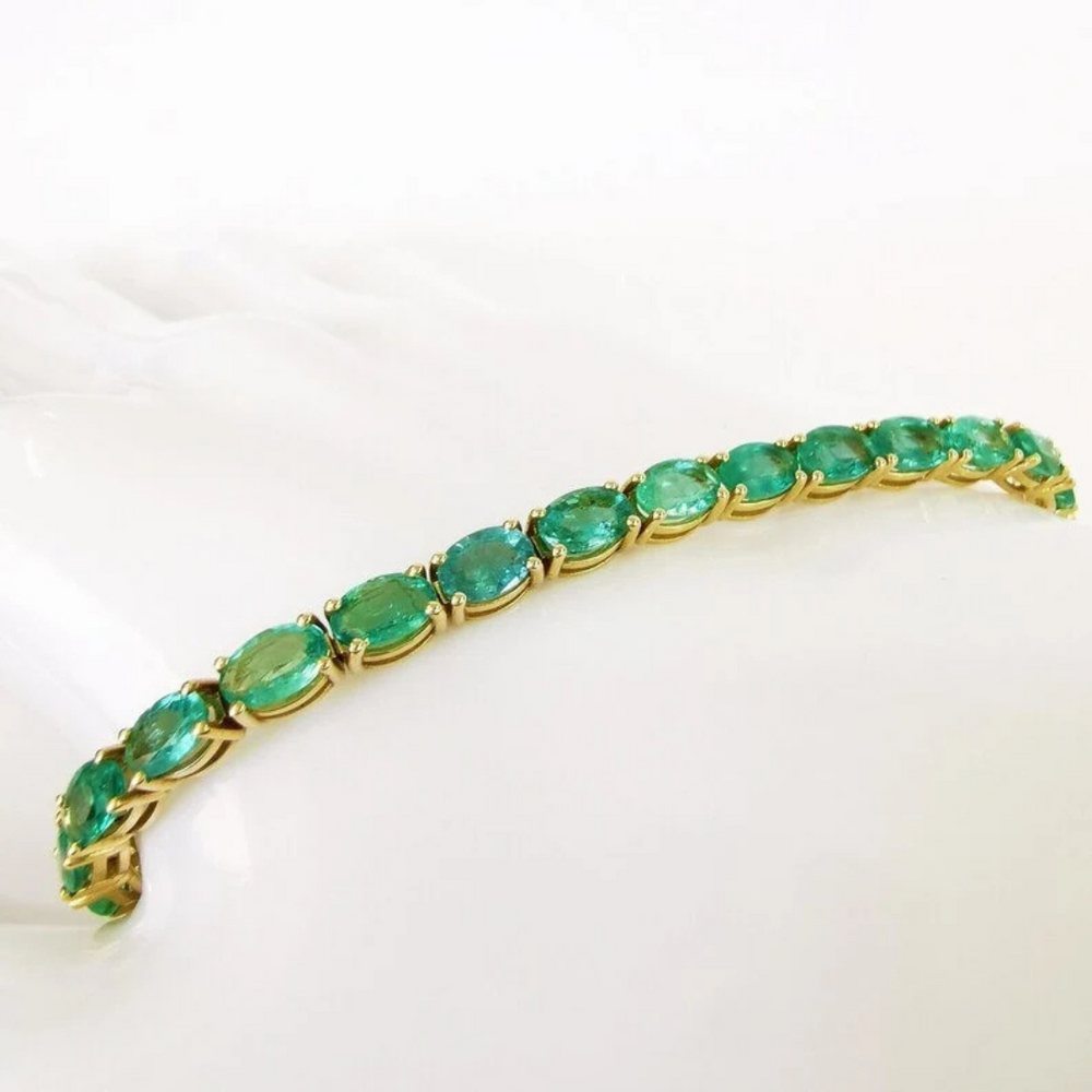 Emerald Bracelet, Gold Bracelet, Natural Gemstone Bracelet Tennis Bracelet Handmade Special For Women
