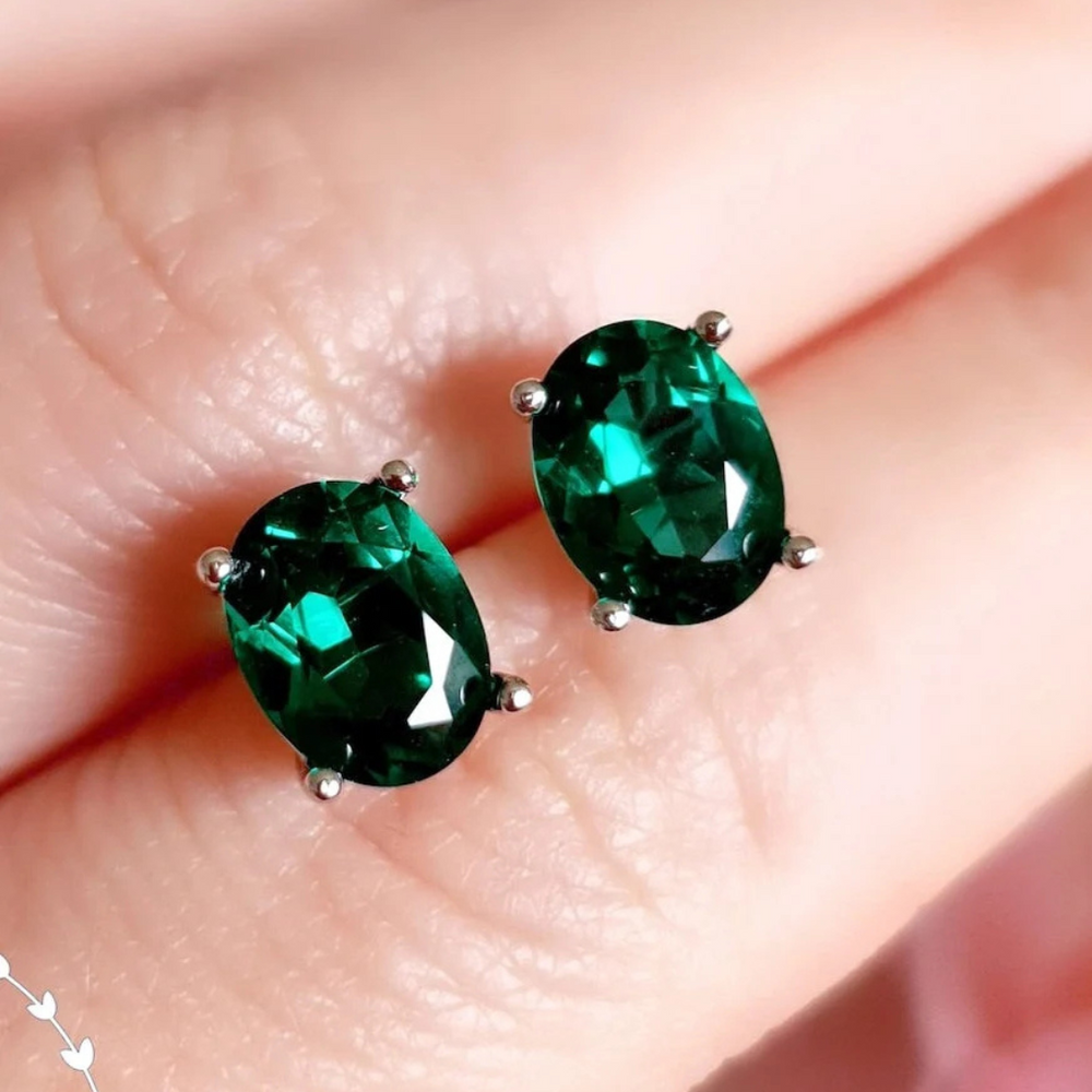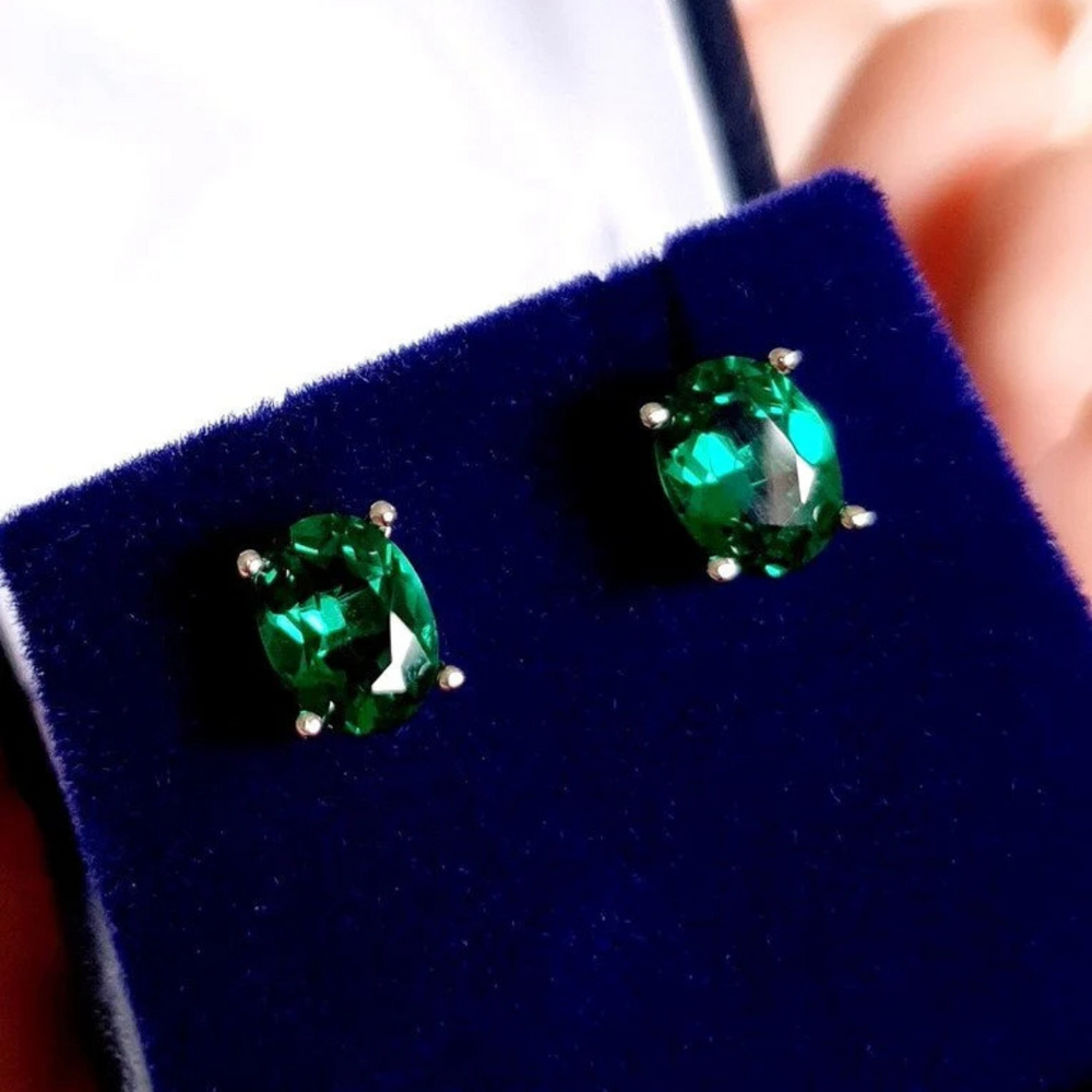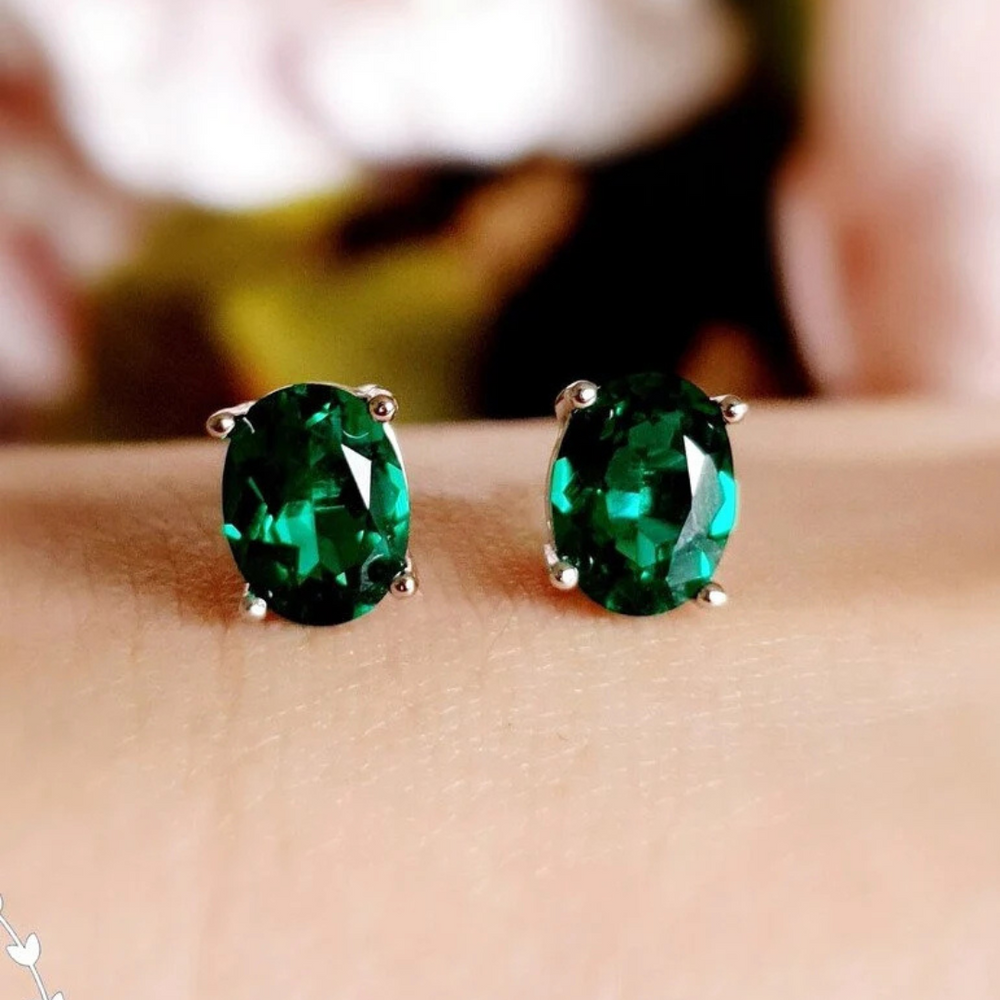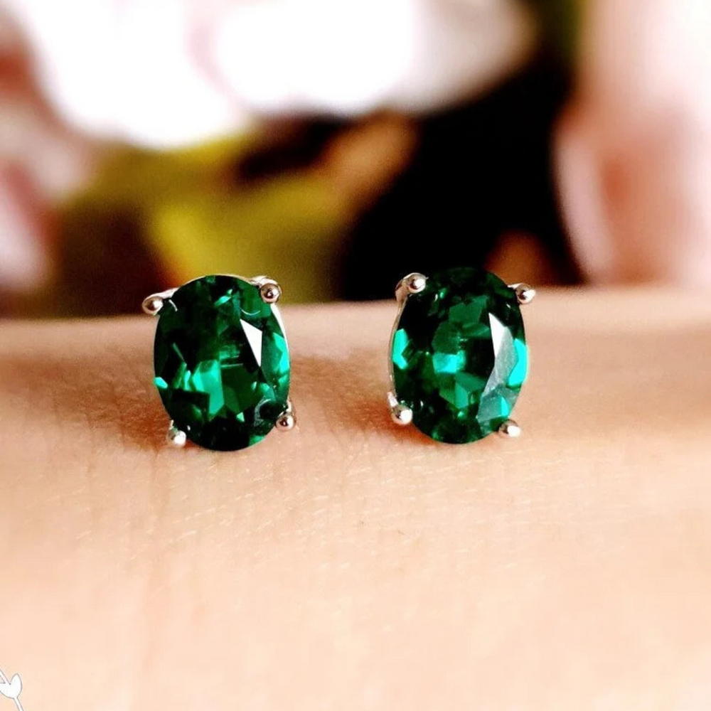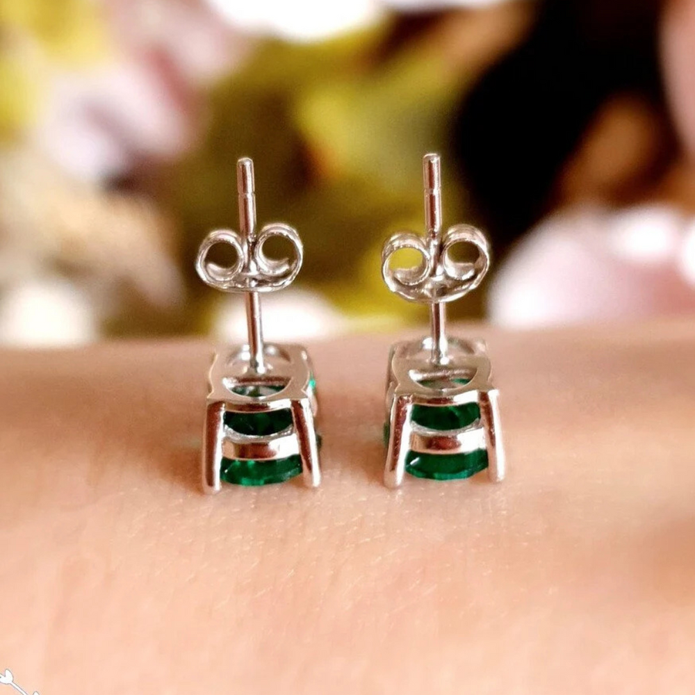 Emerald Earrings, White Gold Earrings, Gemstone Earrings, Stud Earrings For Women Dainty Earrings