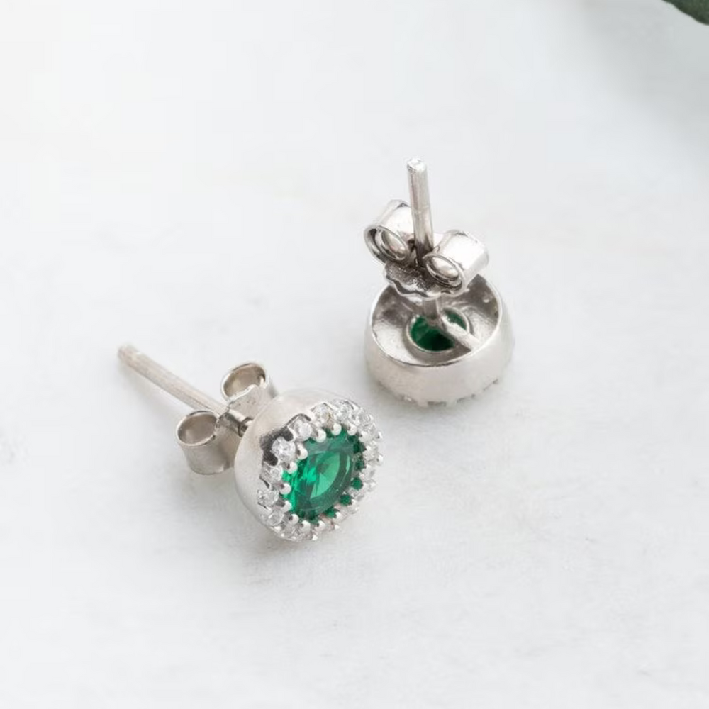 Emerald Stud Earrings, White Gold Earrings, Gemstone Earrings, Stud Earrings For Women Mini Earrings