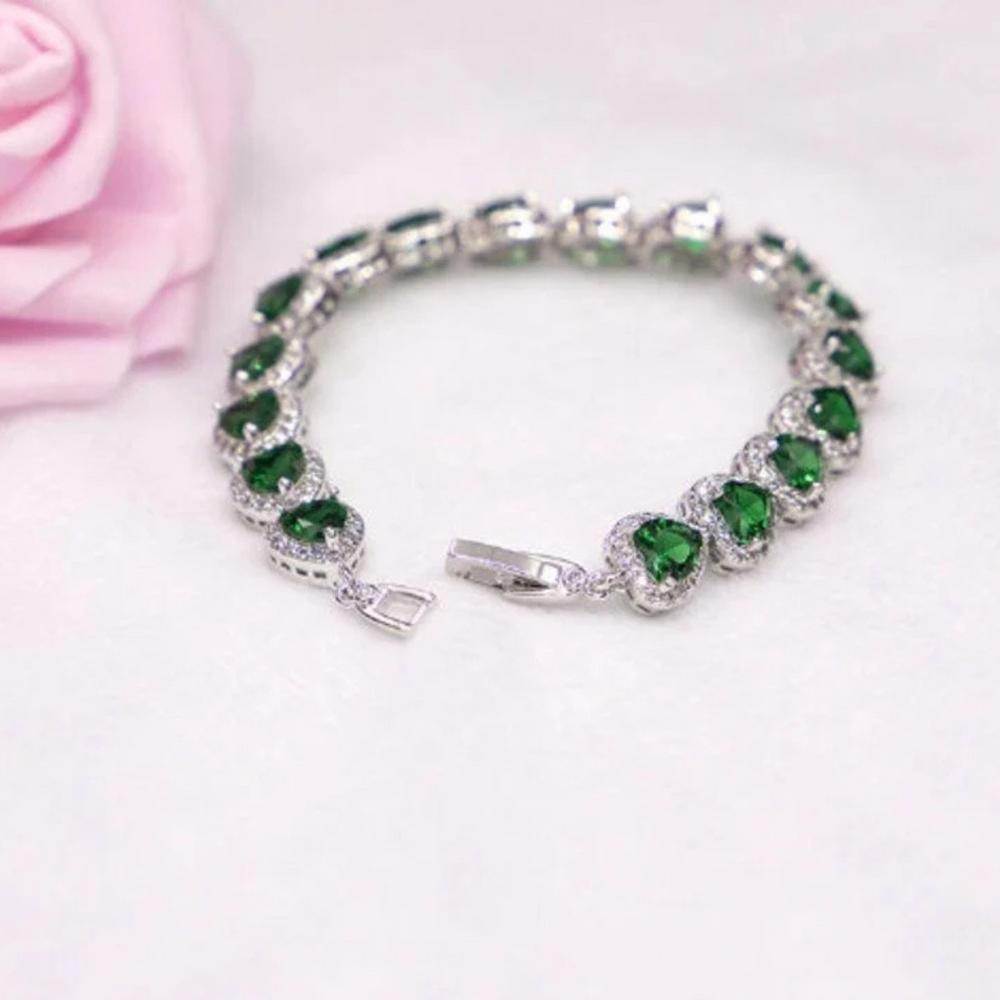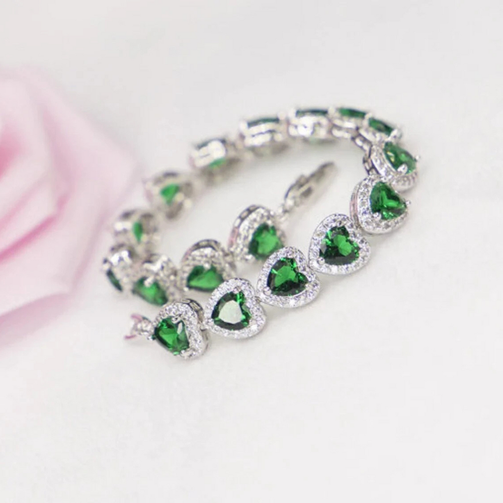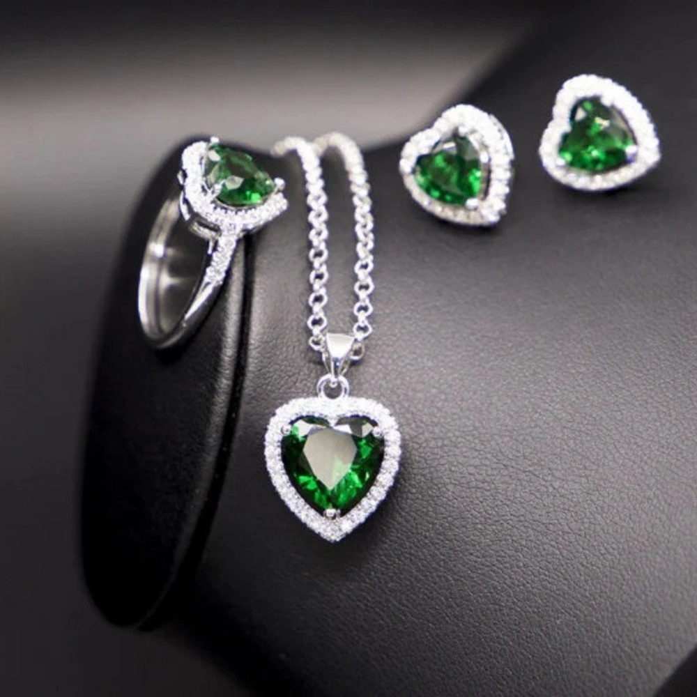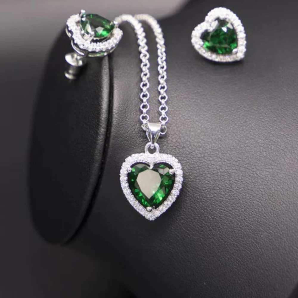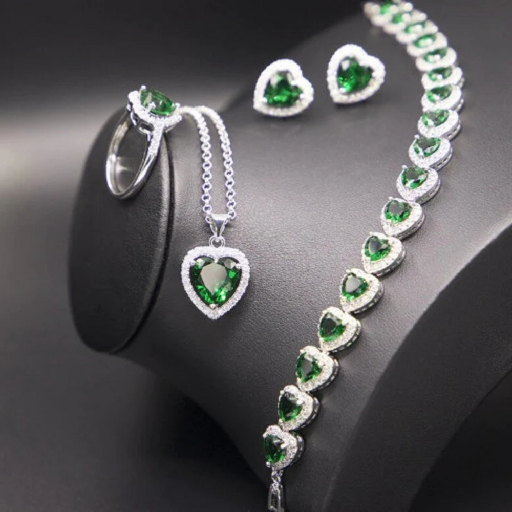 Lovely Heart Emerald And Moissanite Jewelry Set 18k Gold Jewelry Set Ring, Pendant, Earing, Bracelet Gemstone Jewelry Set Special