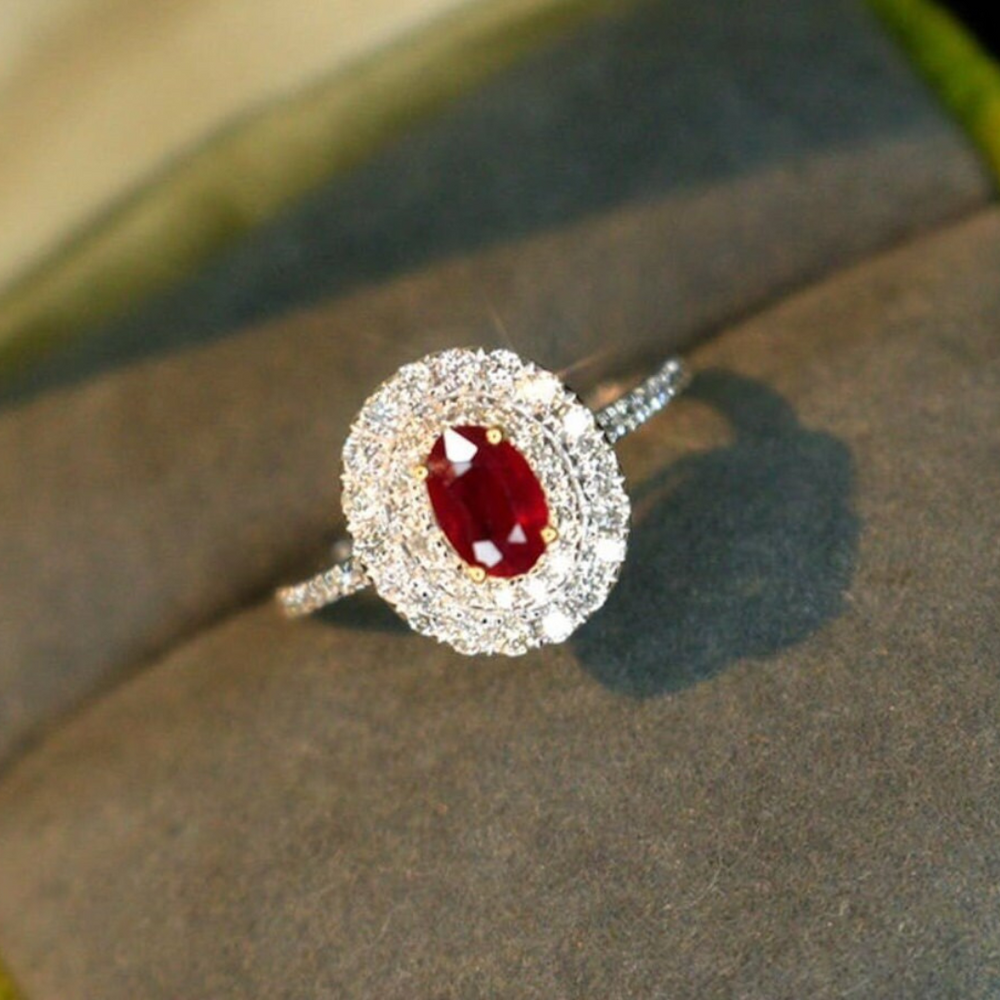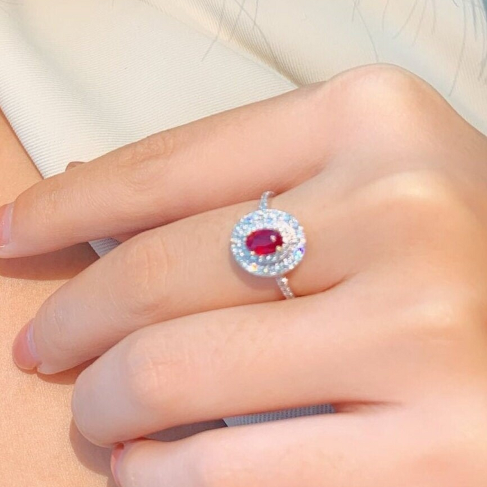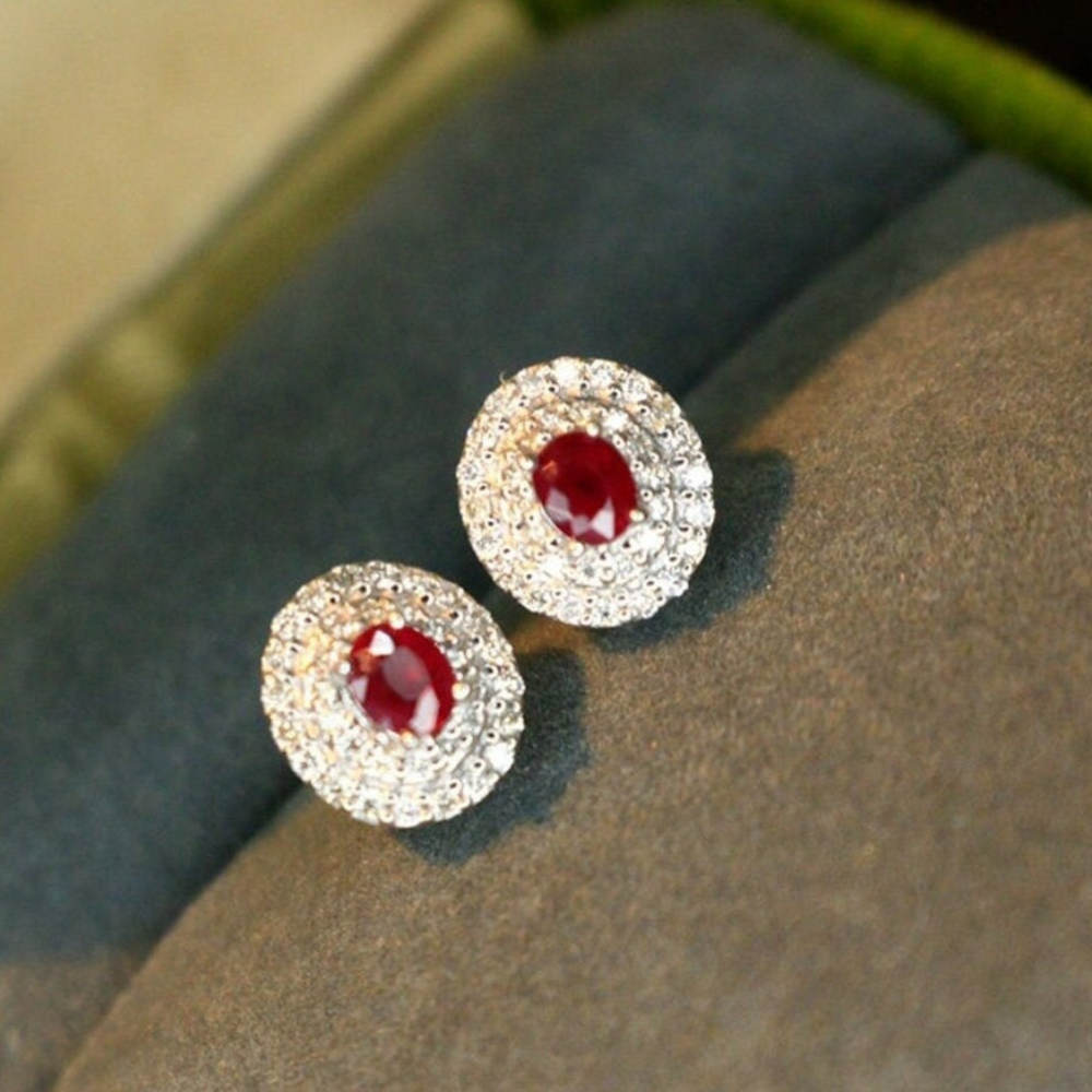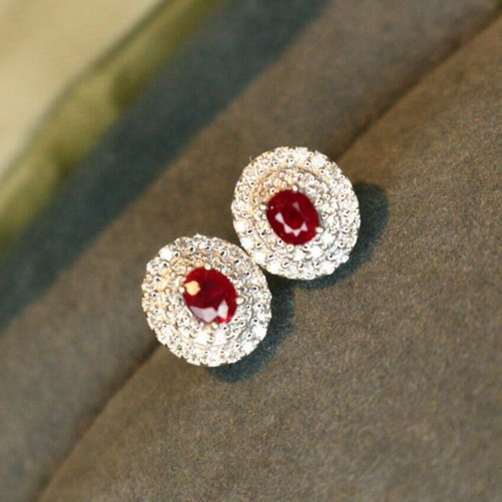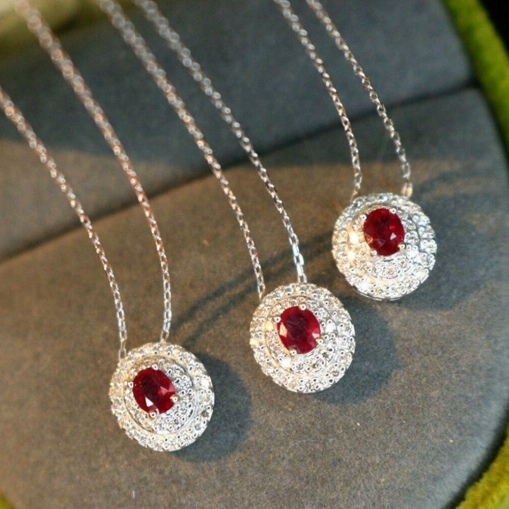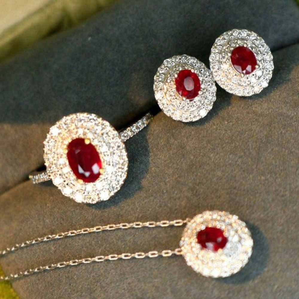 Most Beautiful Ruby Gemstone - Women 3 Piece Set Fine Jewelry - Solid 18K White Gold Jewelry Set - Women Pendent & Ring With Studs Fine Set