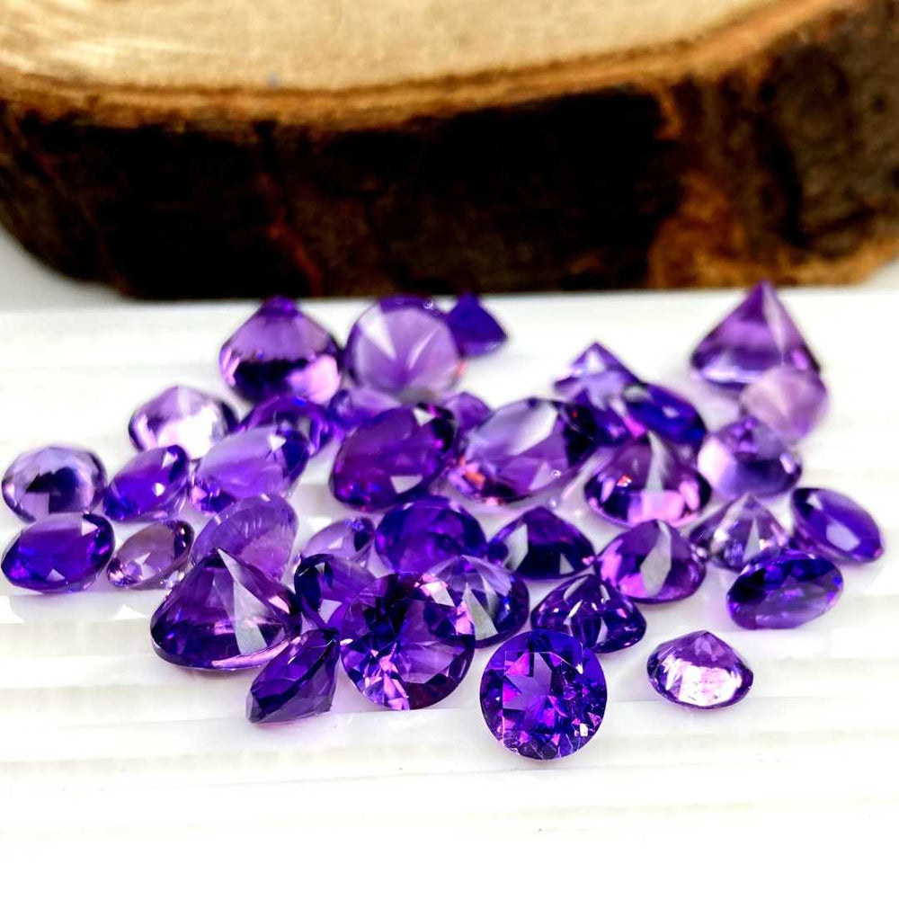 Natural Amethyst Round Shape Faceted Cut Purple Amethyst Gemstone 6 mm To 9 mm