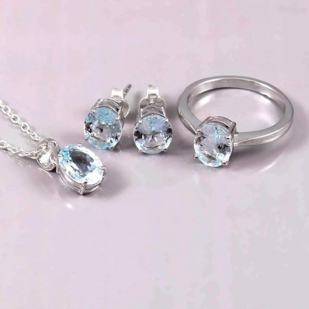 Natural Aquamarine Jewelry Set 18k White Gold Jewelry Set Ring, Pendant, Earing Gemstone Jewelry Set Special