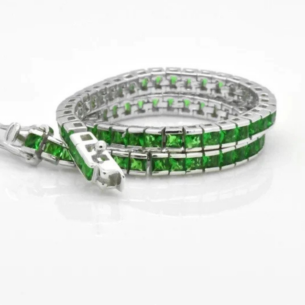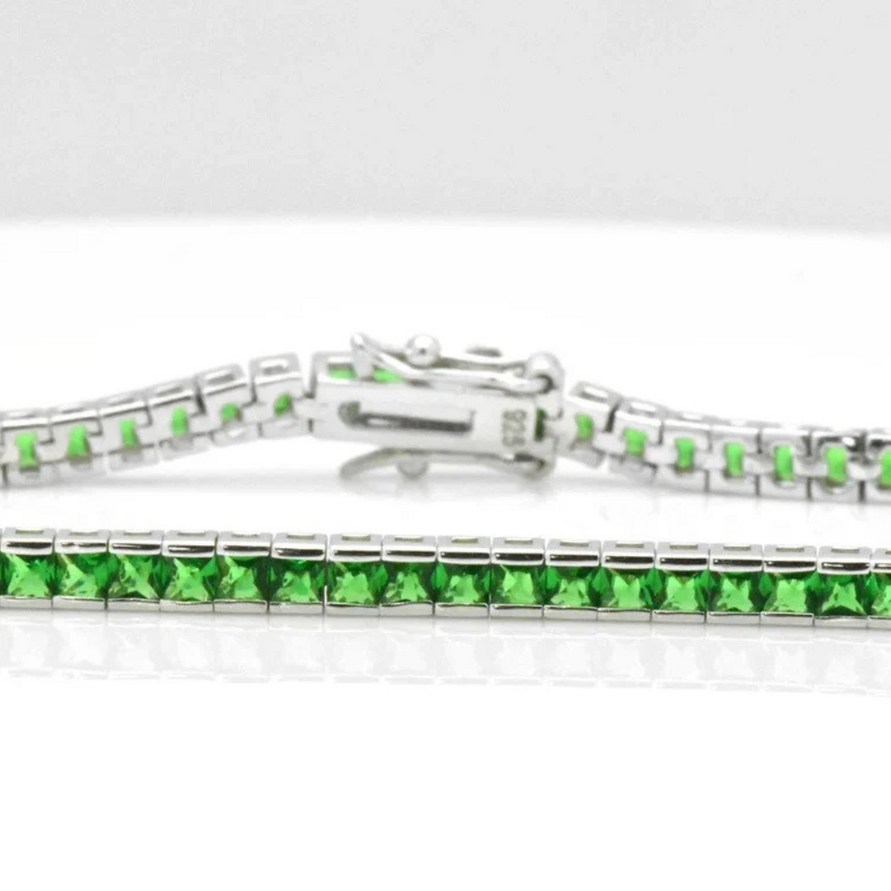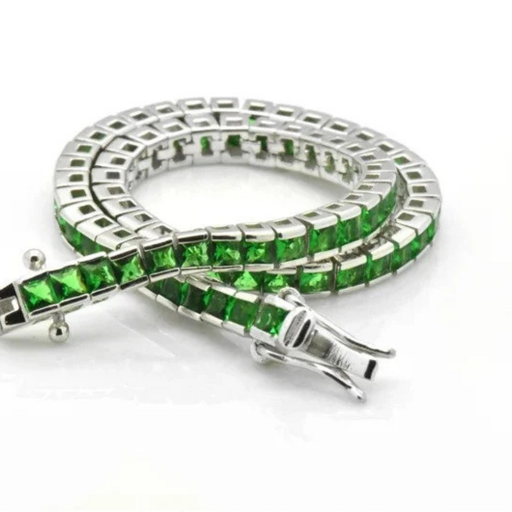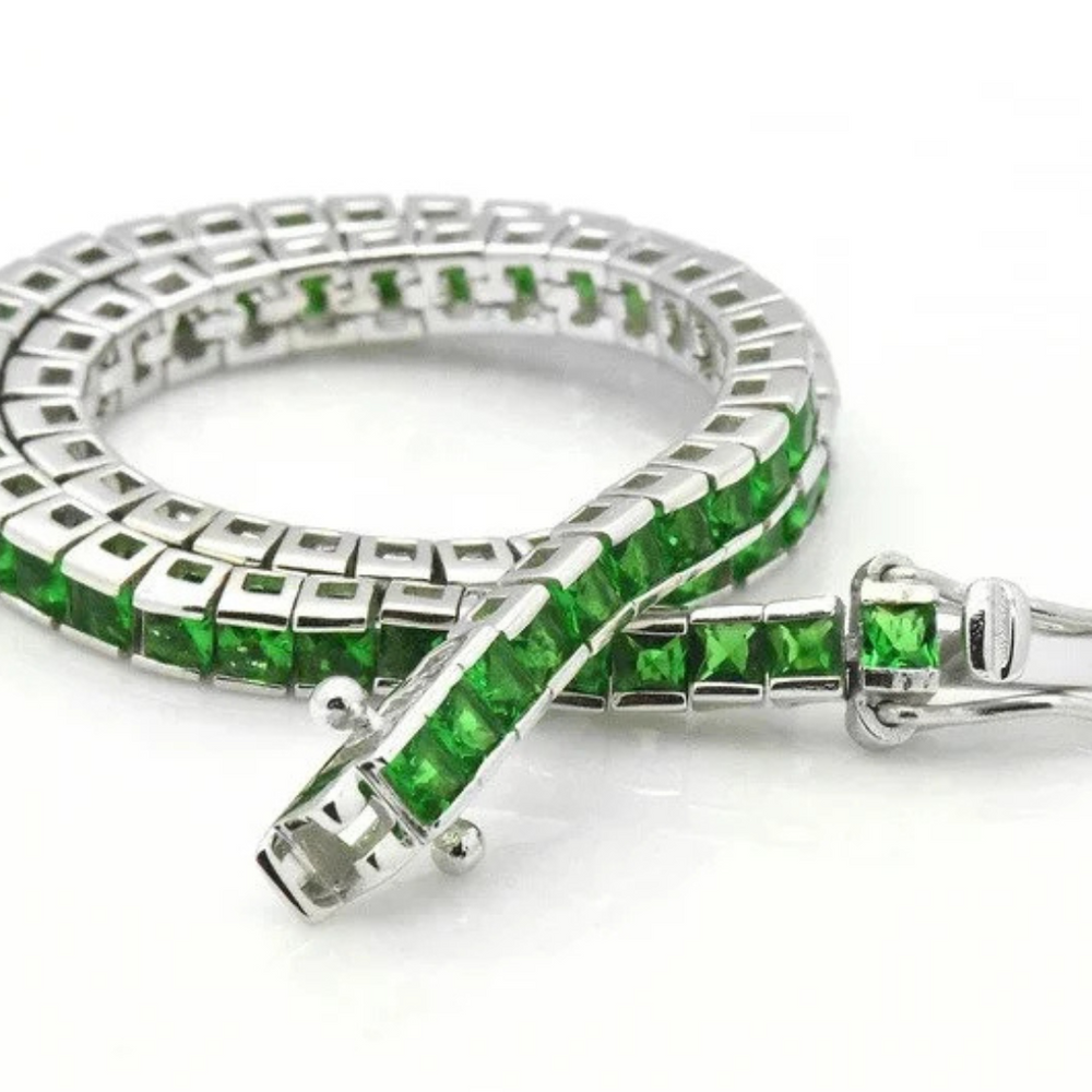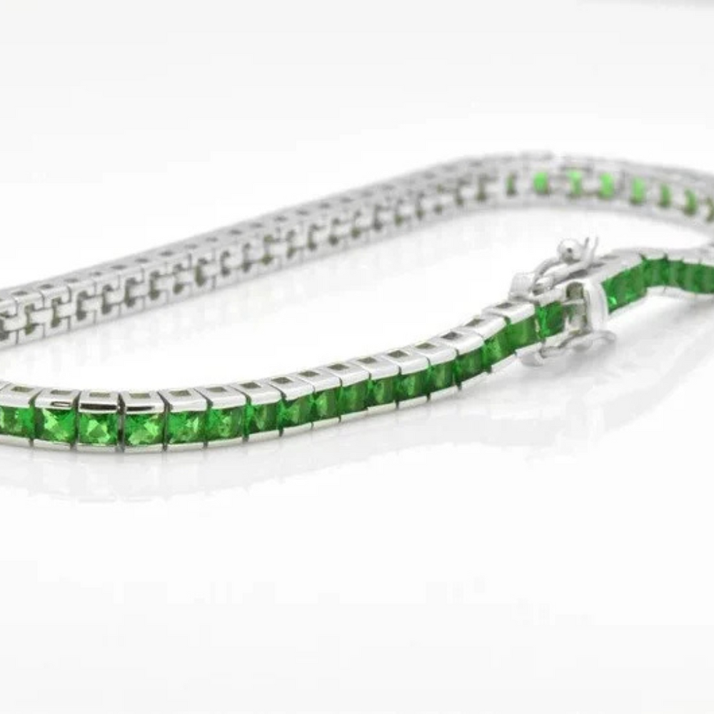 Natural Peridot Bracelet 18K White Gold Bracelet Peridot Gemstone Bracelet Tennis Bracelet Handmade Special Jewelry