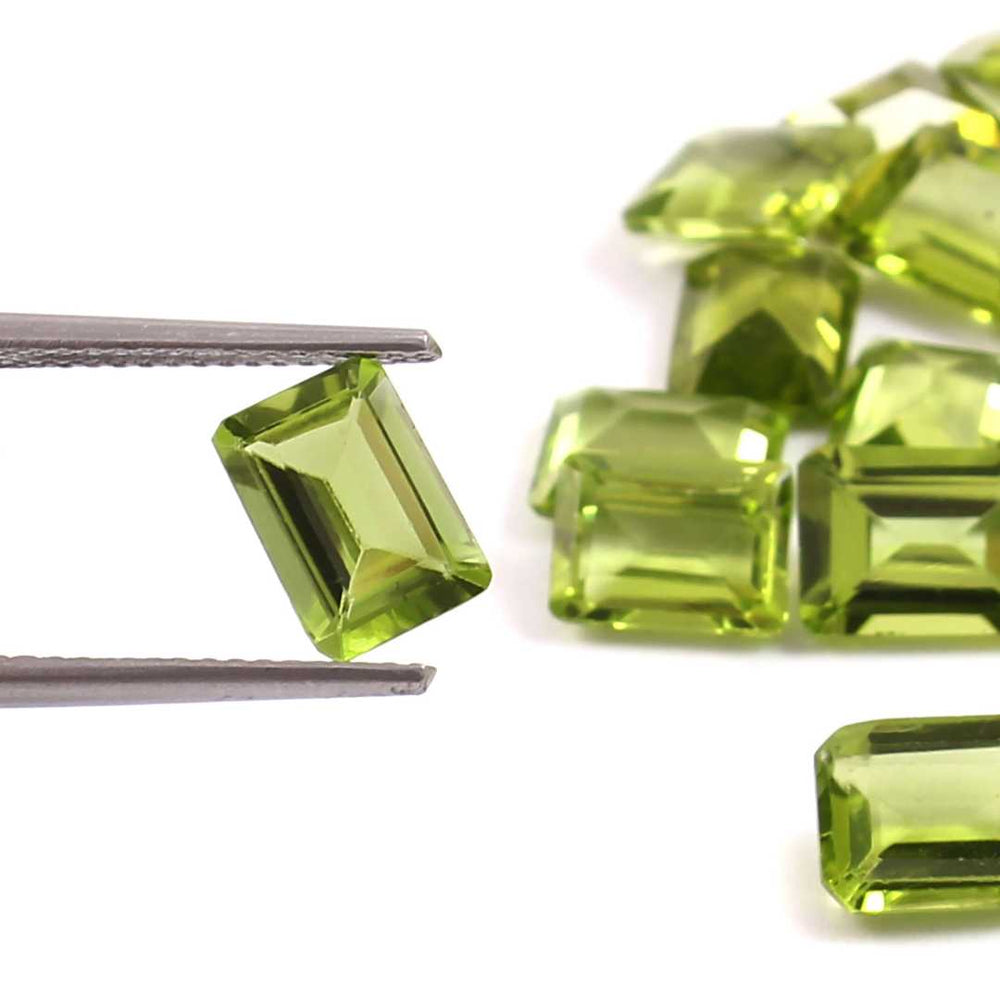 Natural Peridot Gemstone Emerald Cut Peridot Loose Gemstone 5X7 mm To 7X9 mm