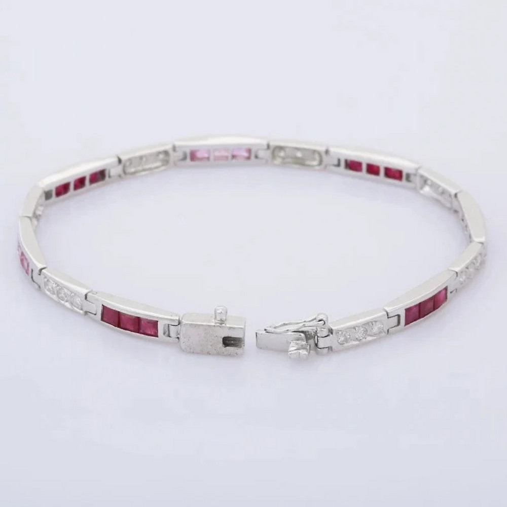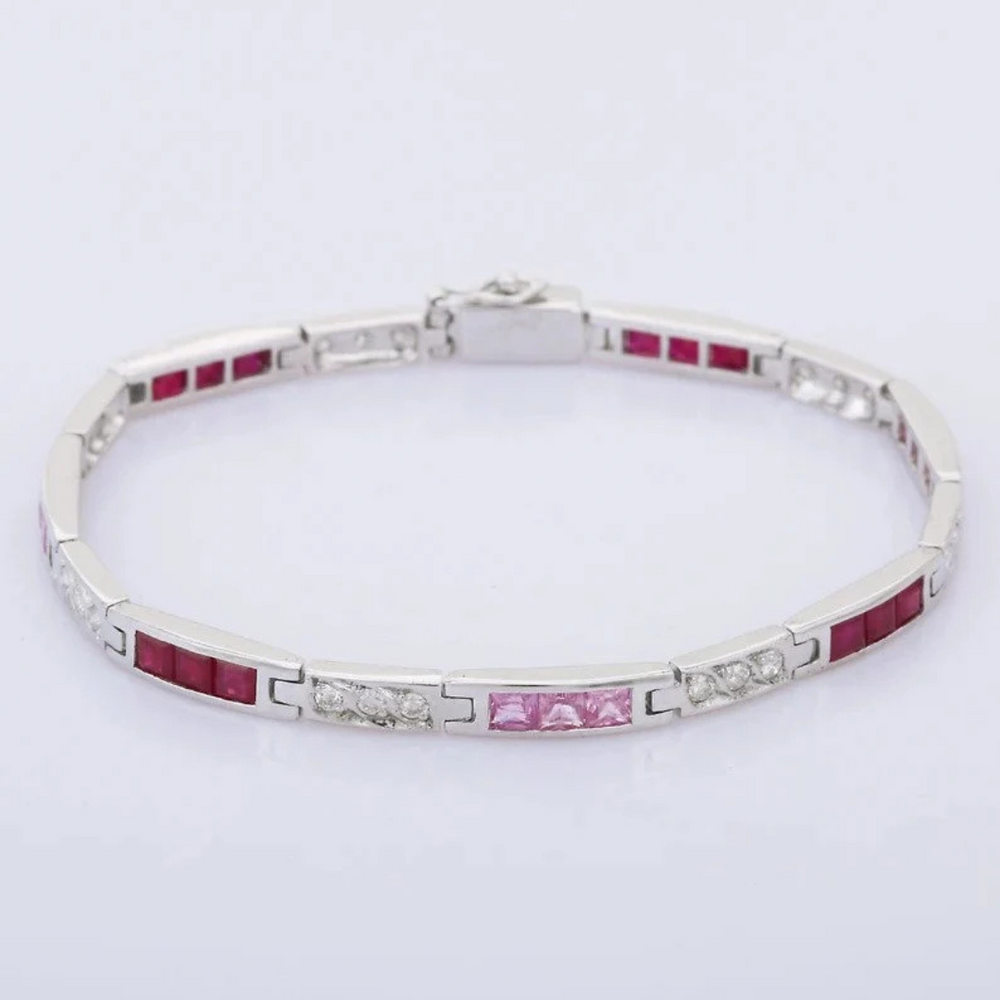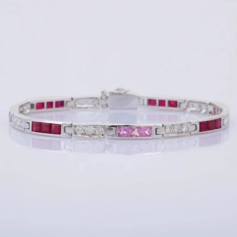 Natural Pink Sapphire Ruby with Moissanite Bracelet 18K White Gold Bracelet Gemstone Bracelet Tennis Bracelet Handmade Special Jewelry