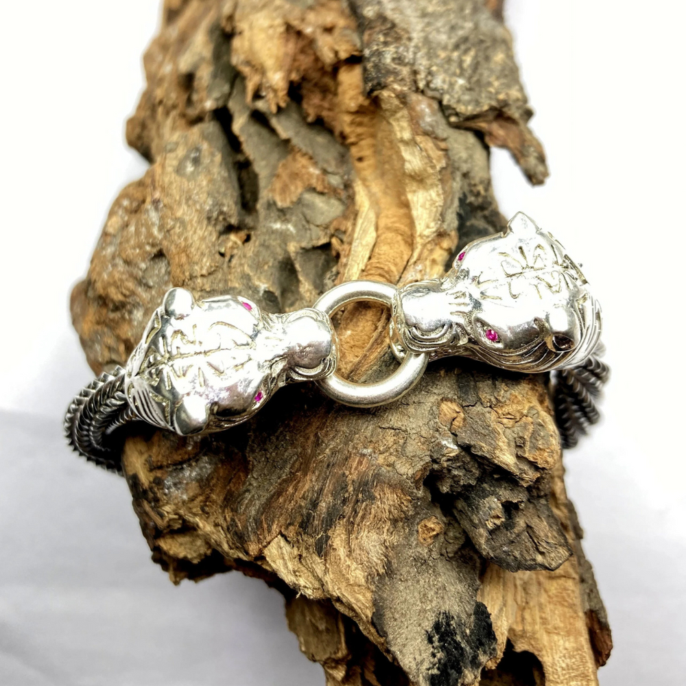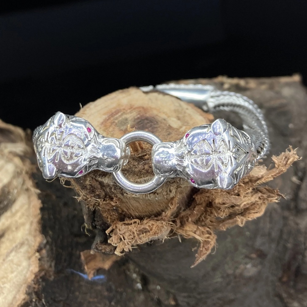 Natural Ruby Bracelet 925 Sterling Silver Bracelets, with Eye Deign Silver Jewelry Antique Bracelet