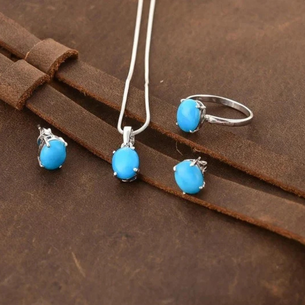 Natural Turquoise 3 piece set 18k white gold handmade jewelry Minimalist Jewelry Cabochon Jewelry Gift for her wedding