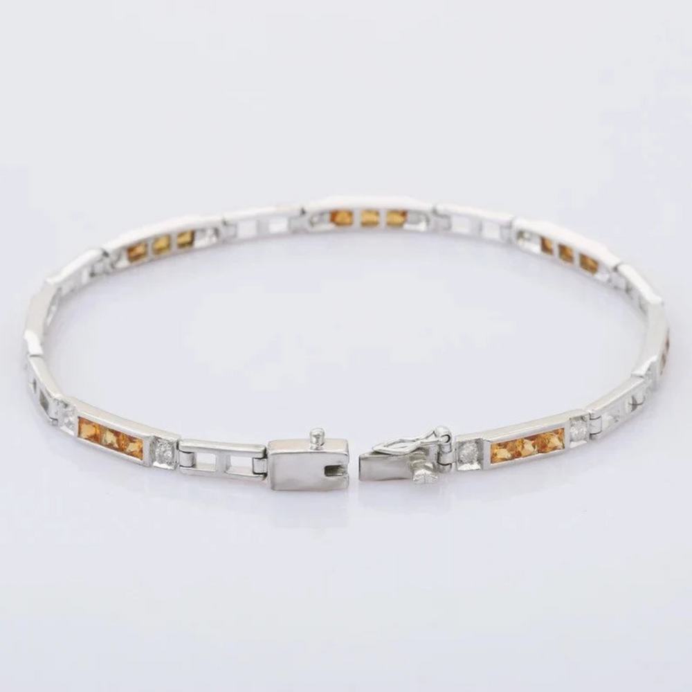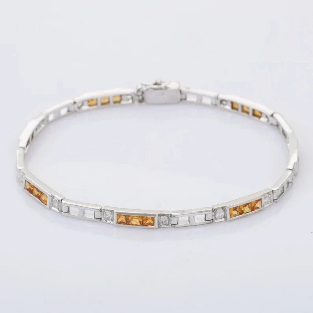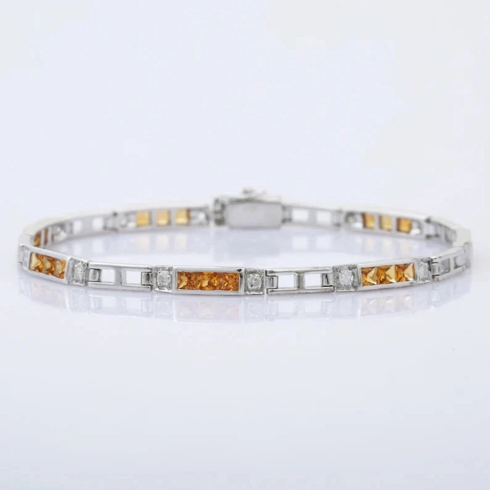 Natural Yellow Sapphire Bracelet 18K White Gold Bracelet Sapphire with Moissanite Gemstone Bracelet Tennis Bracelet Handmade Special Jewelry
