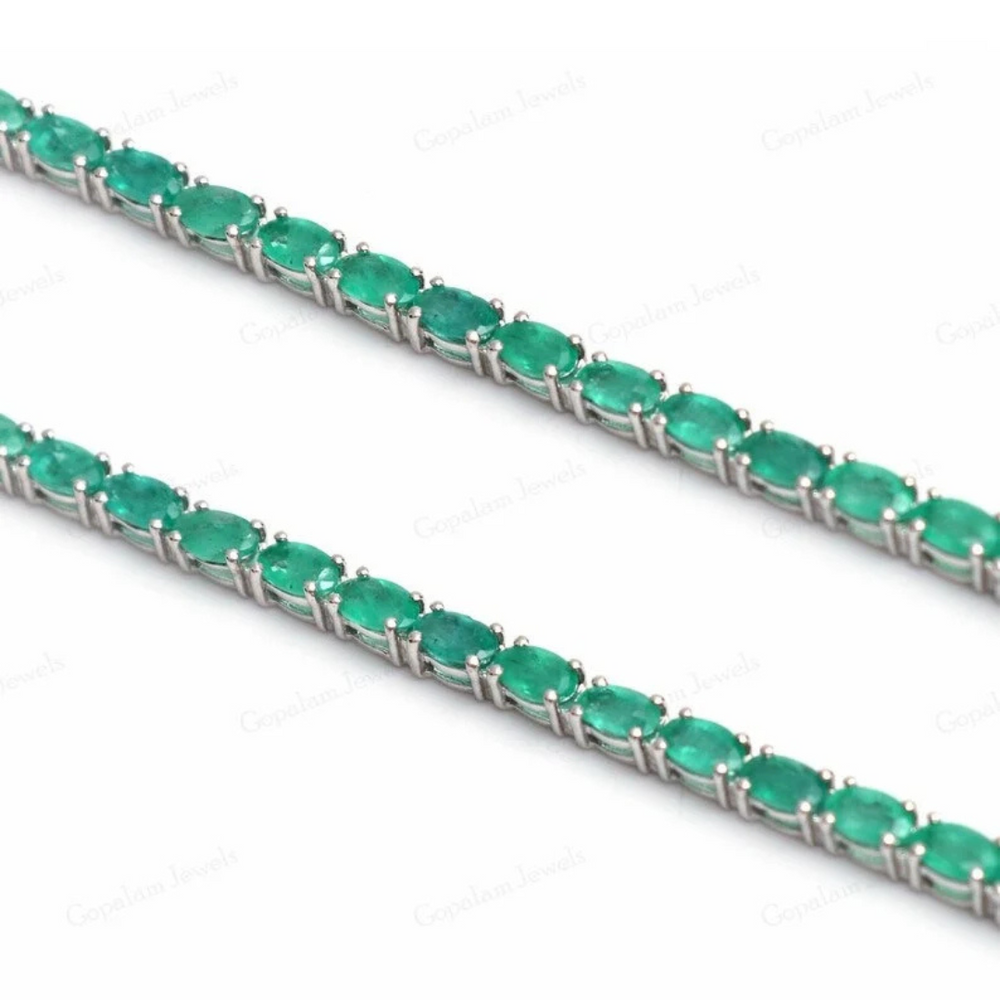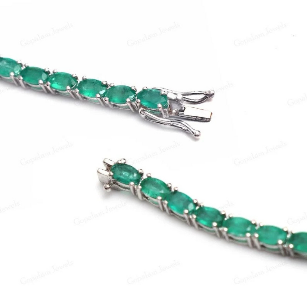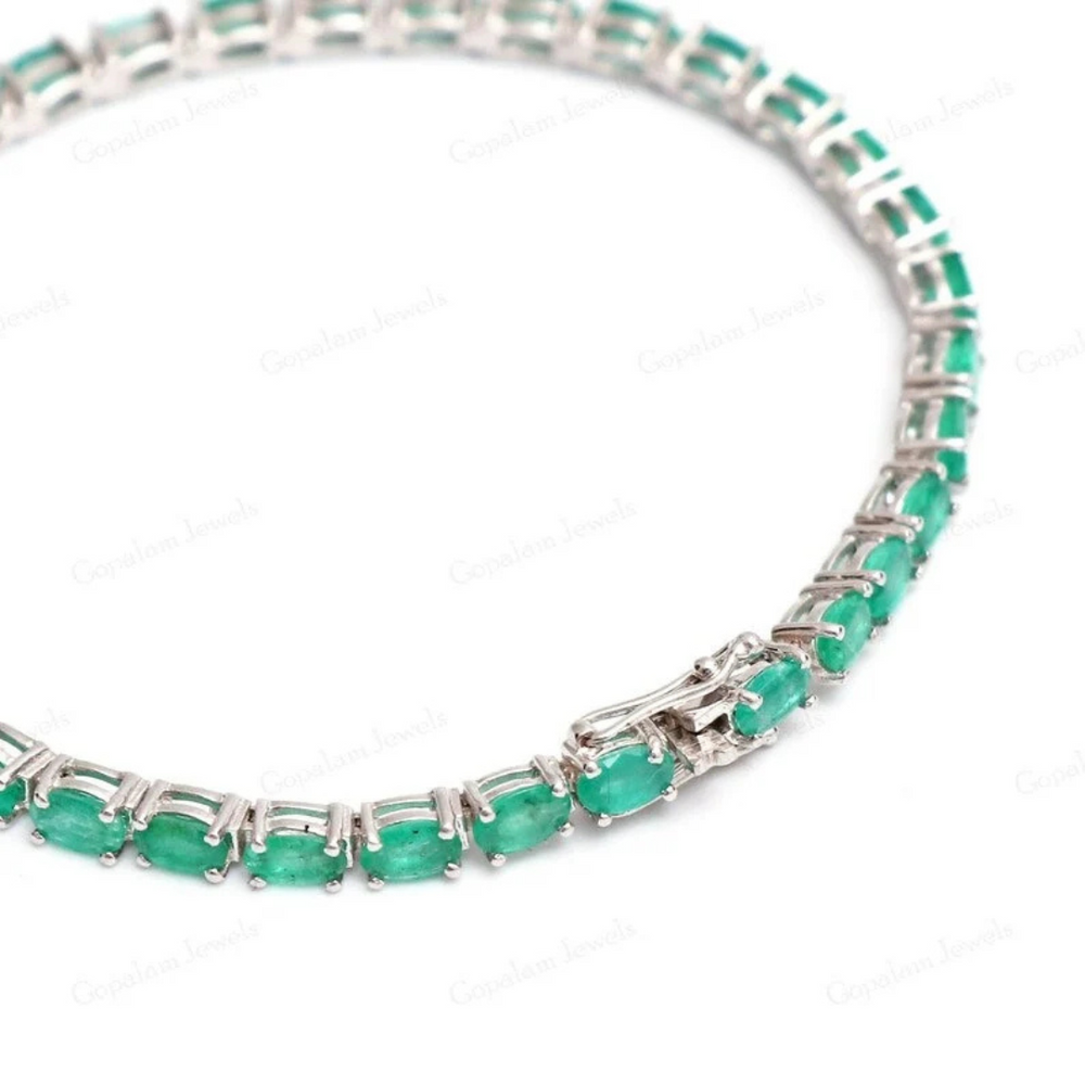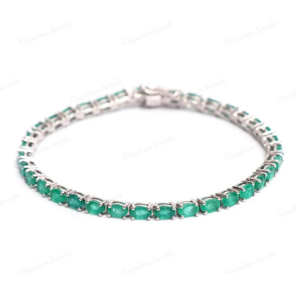 Zambian Emerald Bracelet 18K White Gold Bracelet Zambian Emerald Gemstone Bracelet Square Princess Cut Tennis Special Jewelry Gift