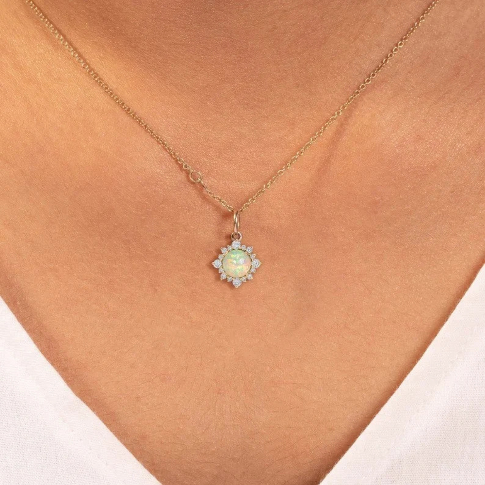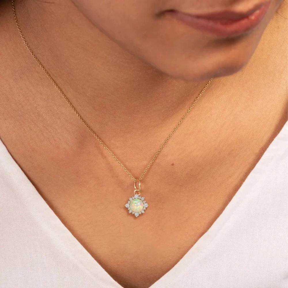 Opal Pendant, Gold Pendant, Fire Opal Gemstone Pendant Special Gift For Women