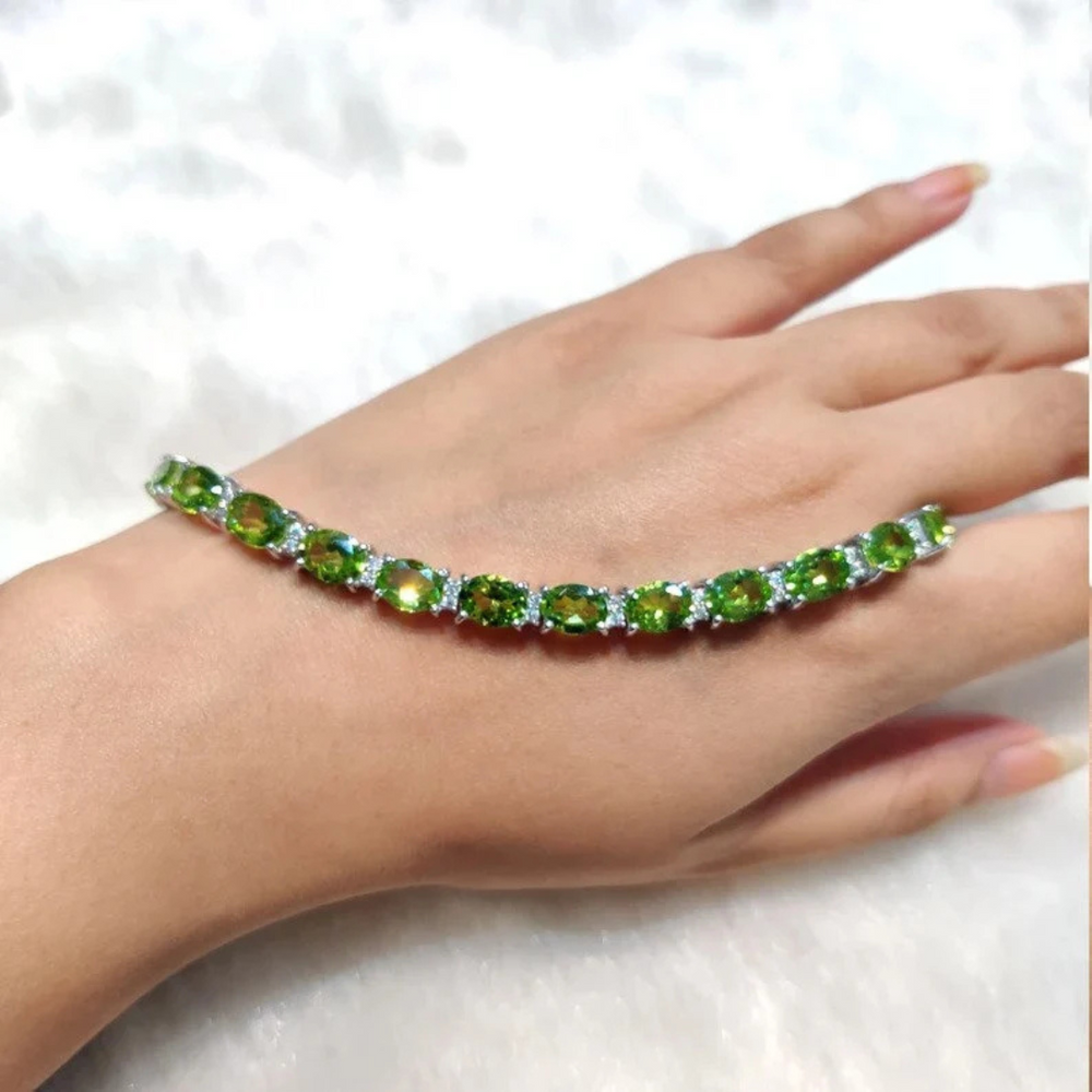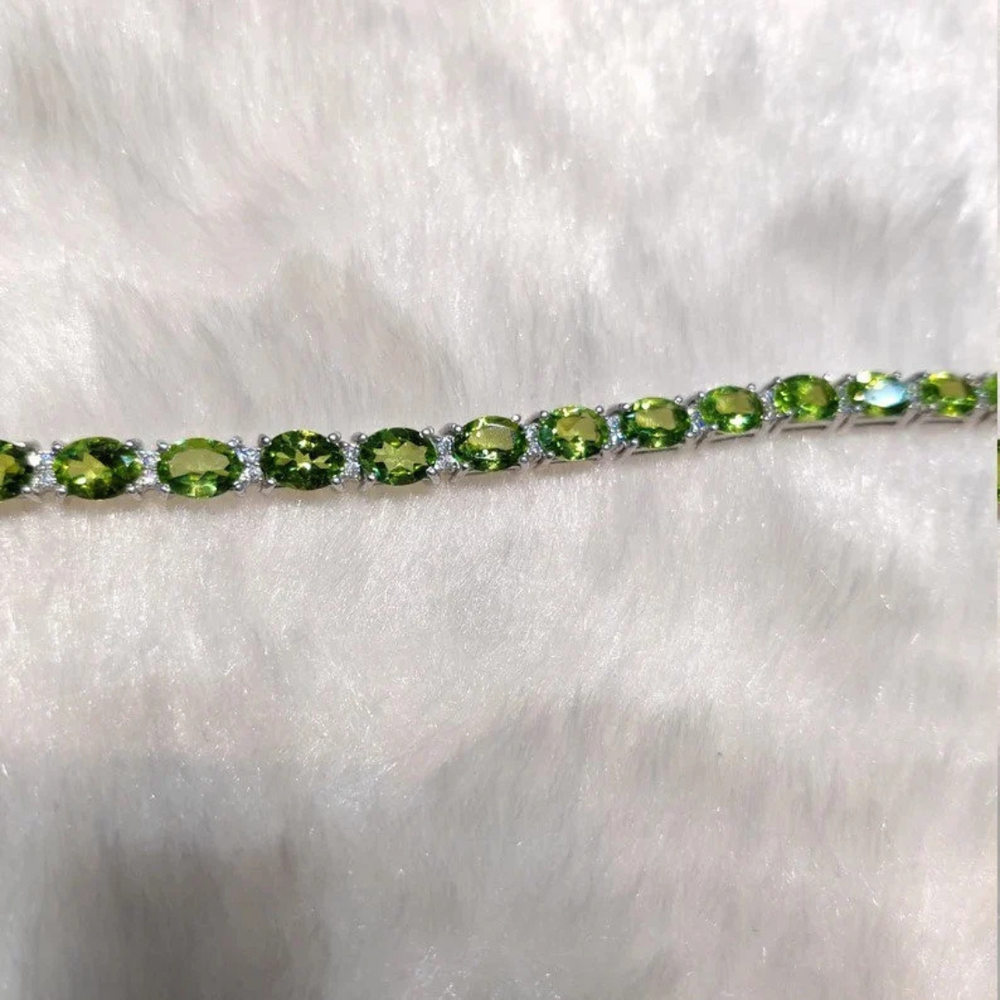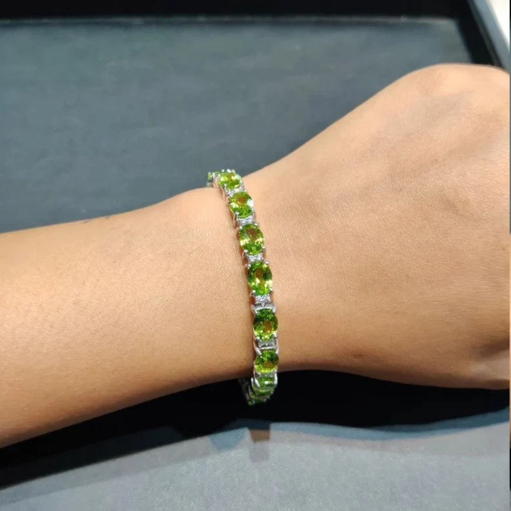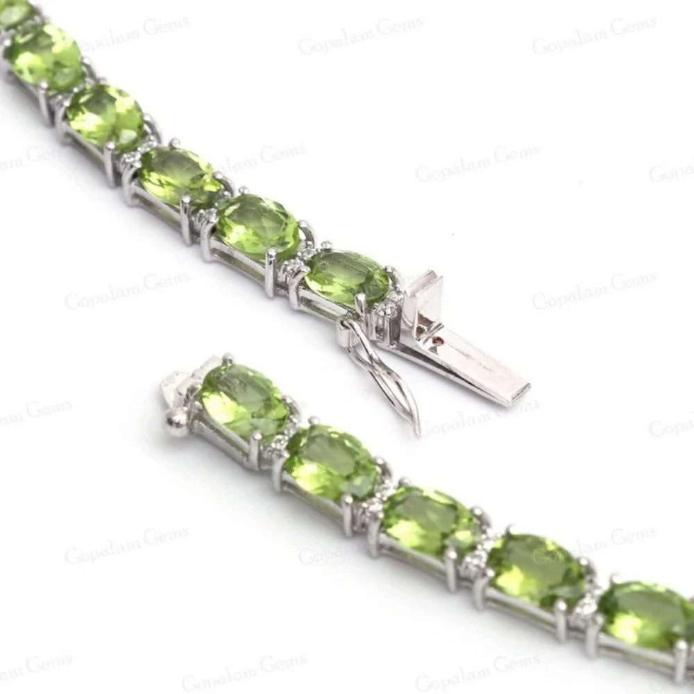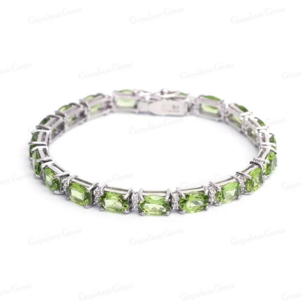 Peridot Bracelet 18K White Gold Bracelet Peridot Gemstone Bracelet Tennis Bracelet Handmade Special Jewelry Gift