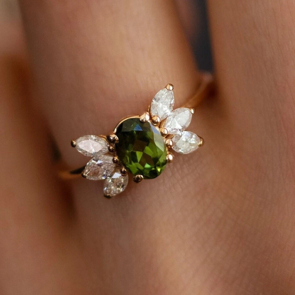 Peridot Ring, 18k Gold Ring, Gemstone Ring, Handmade Special Designer Jewelry