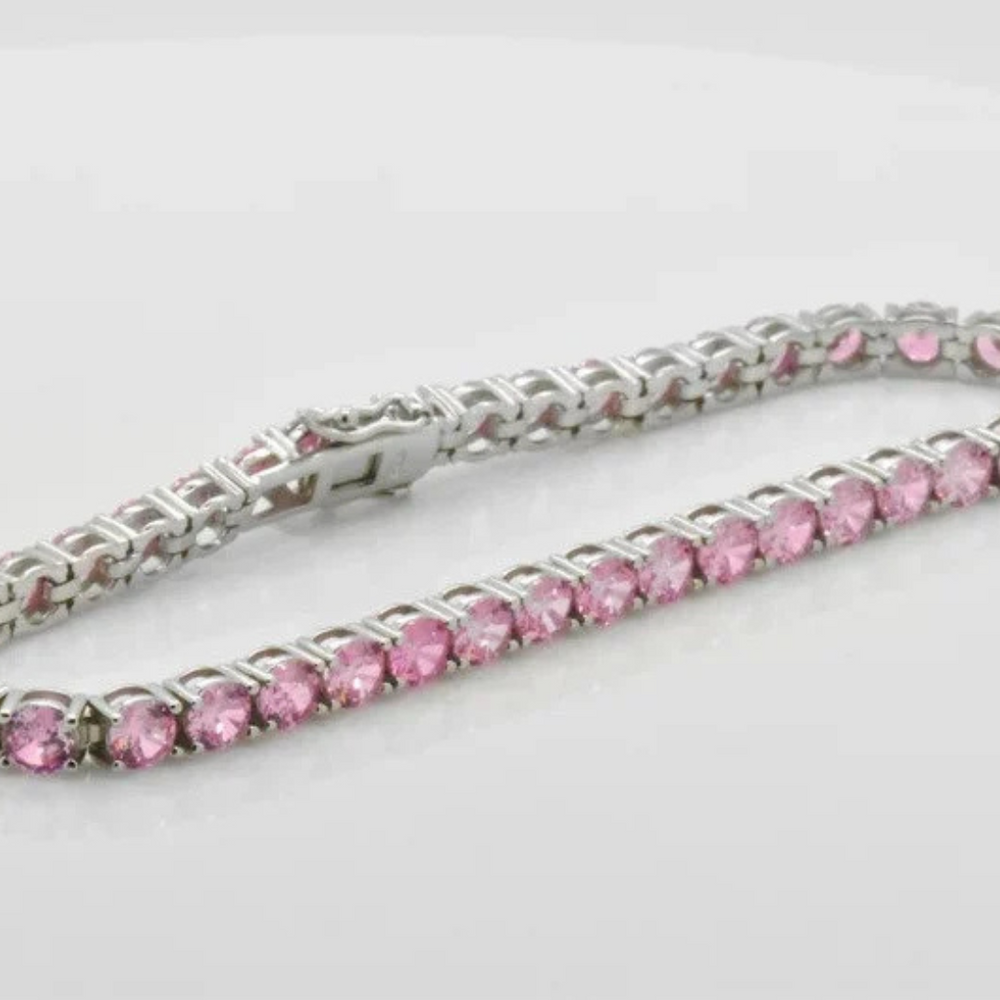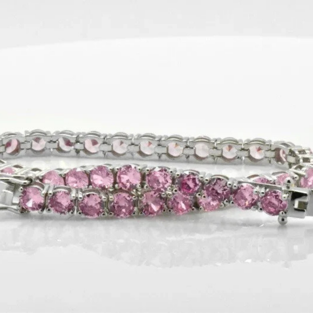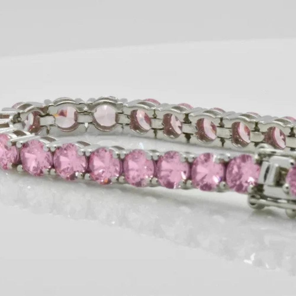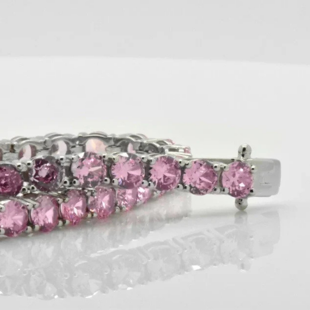 Pink Rhodolite Bracelet 18K White Gold Bracelet Rhodolite Gemstone Bracelet Tennis Bracelet Handmade Special Jewelry Gift