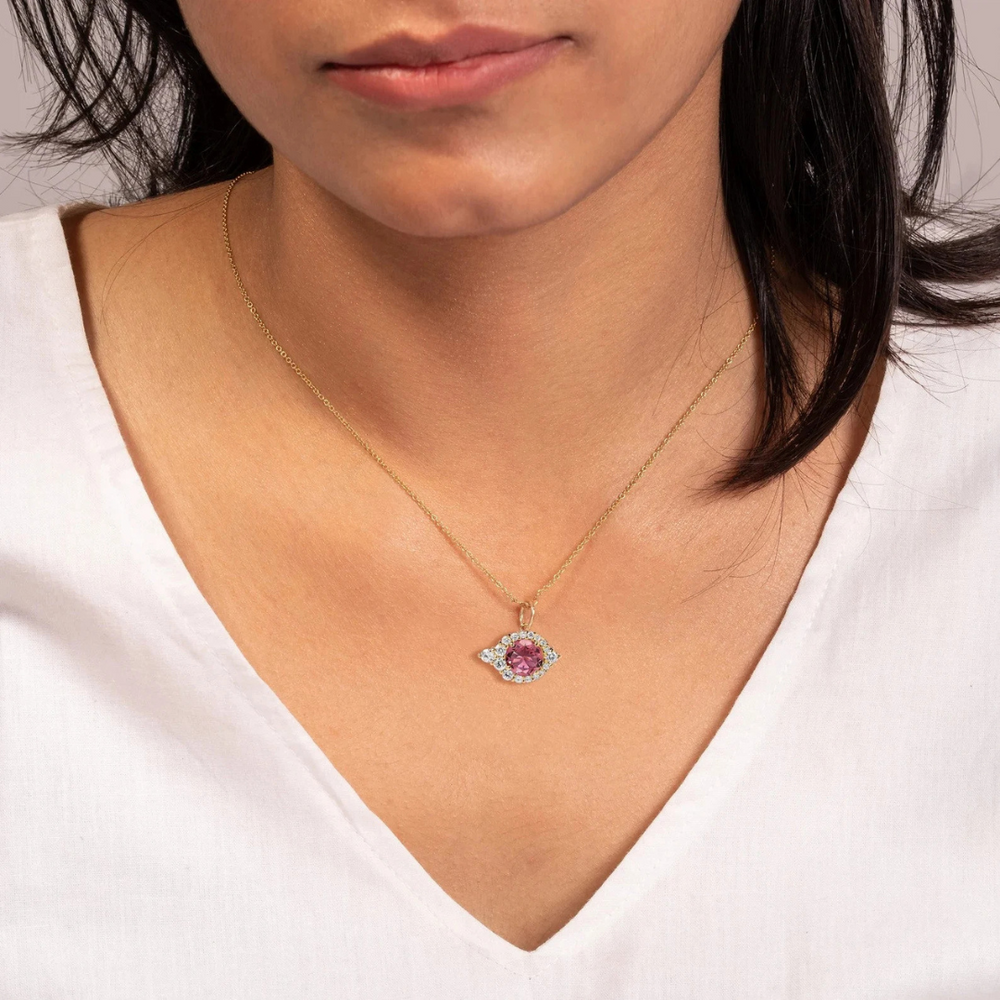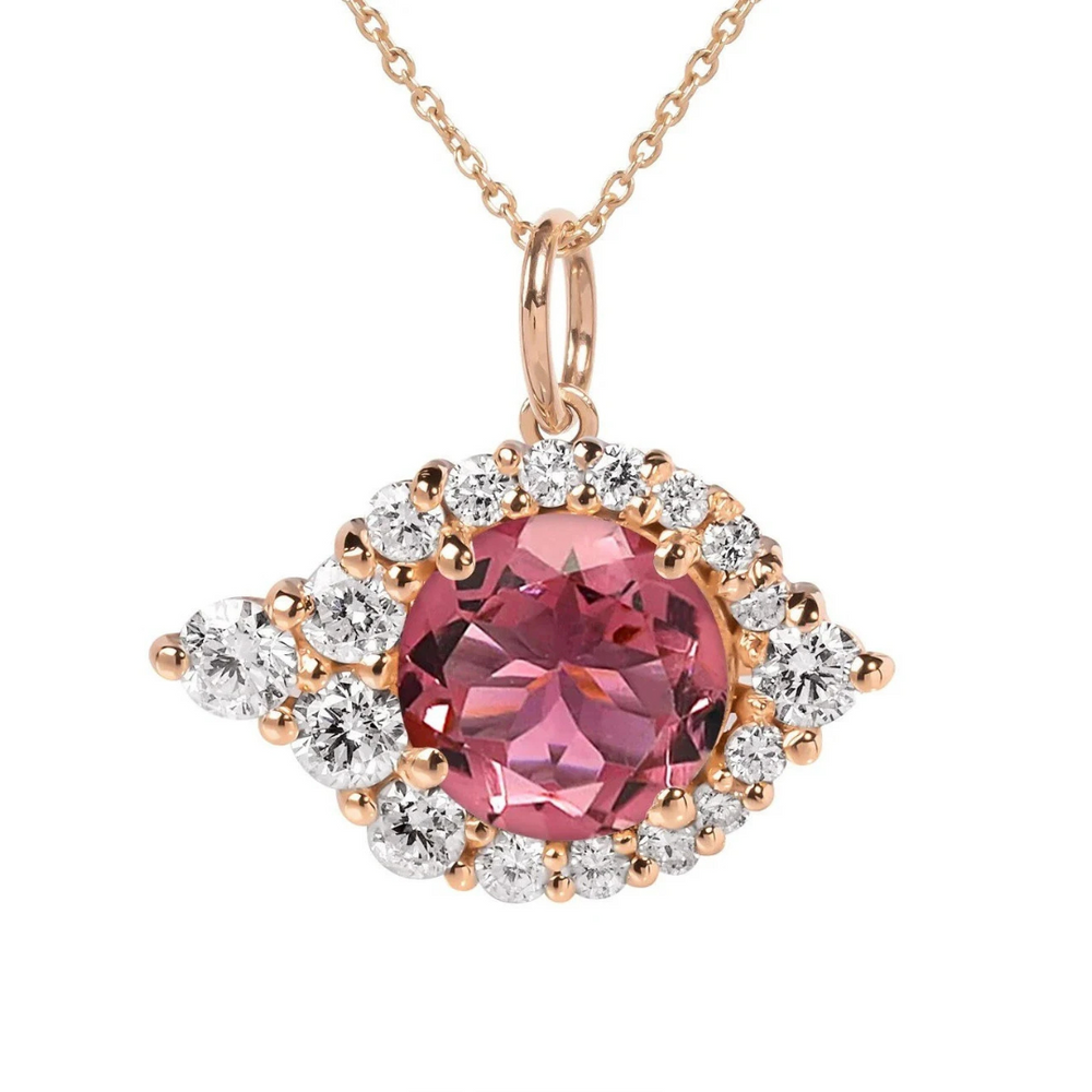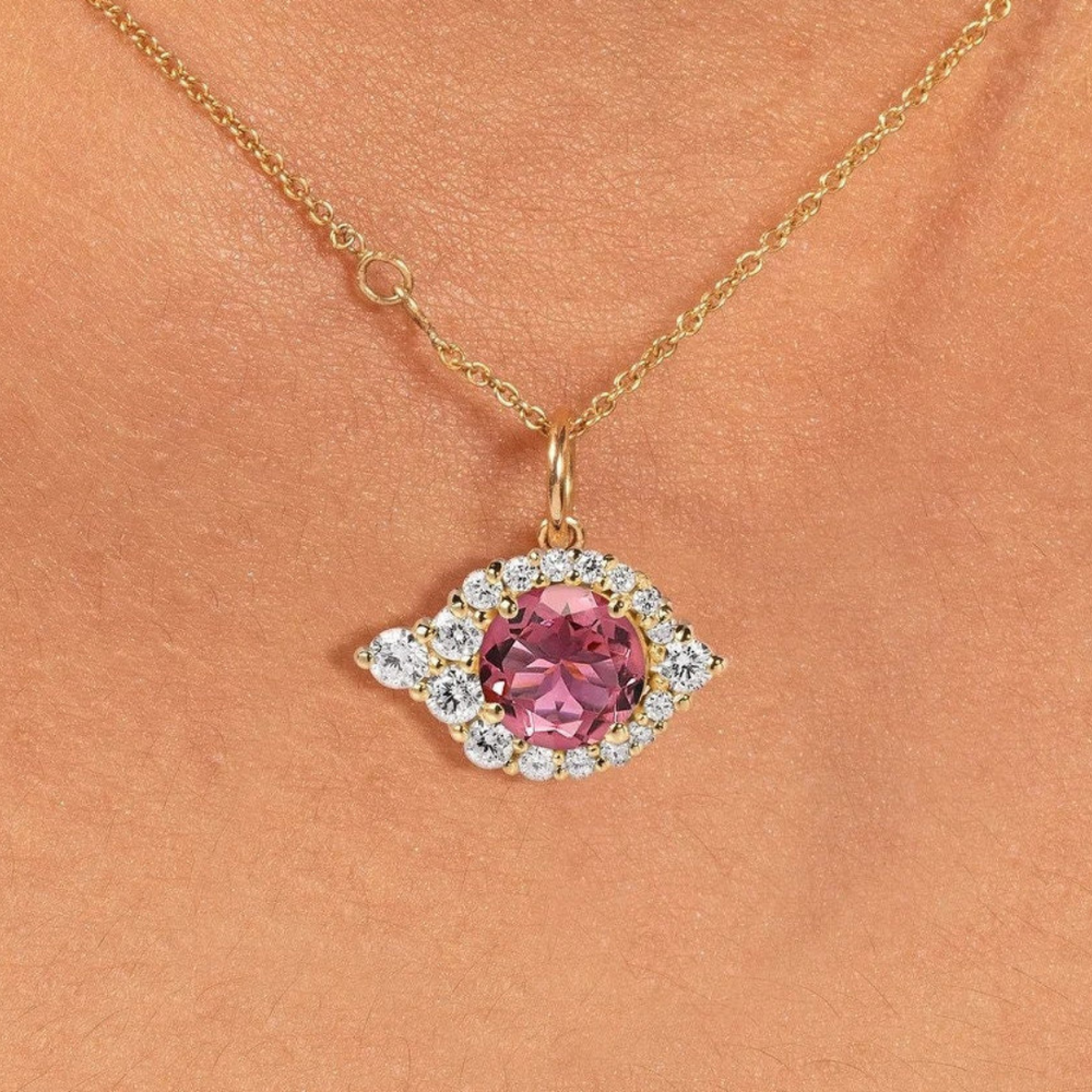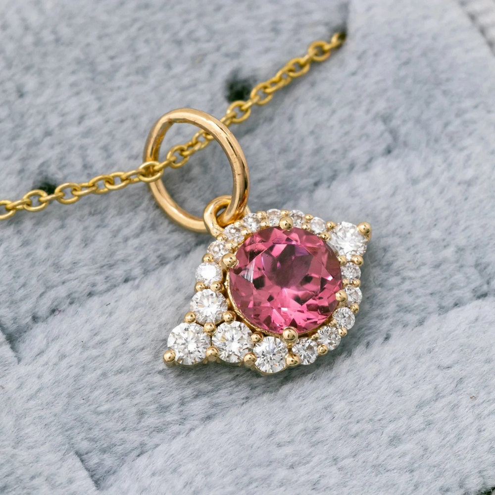 Pink Tourmaline Gold Pendant, Natural Gemstone Pendant, Special Jewelry Gift For Her