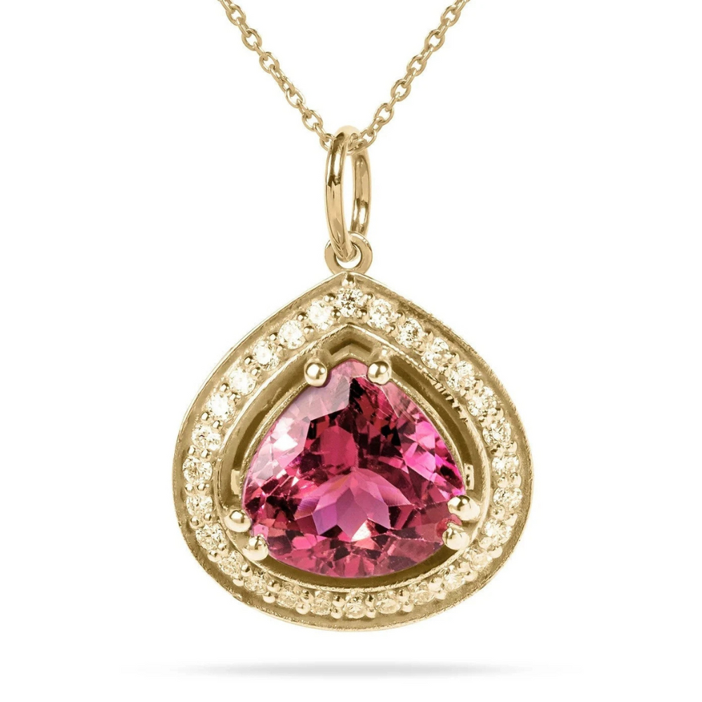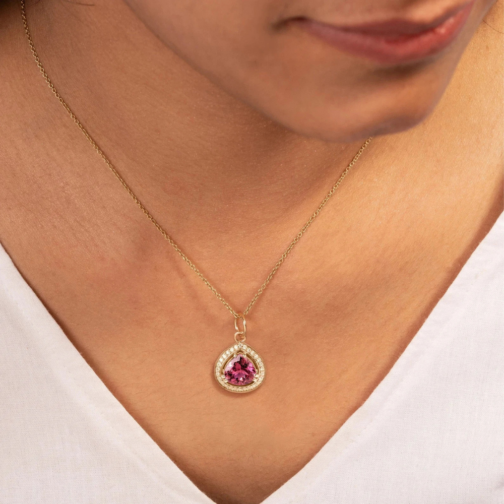 Pink Tourmaline Pendant, Gold Pendant, Gemstone Pendant, Special Gold Jewelry