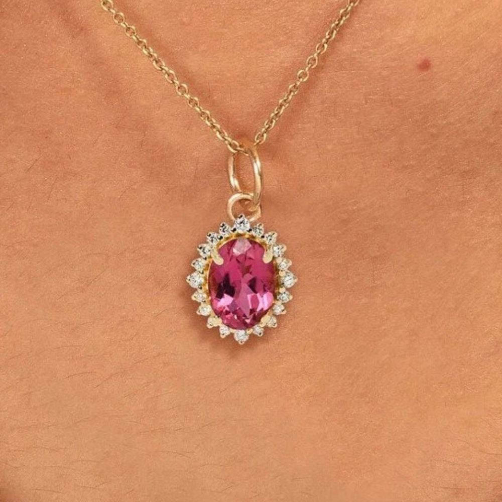 Pink Tourmaline Pendant, Gold Pendant, Gorgeous Pendant For Women Natural Gemstone
