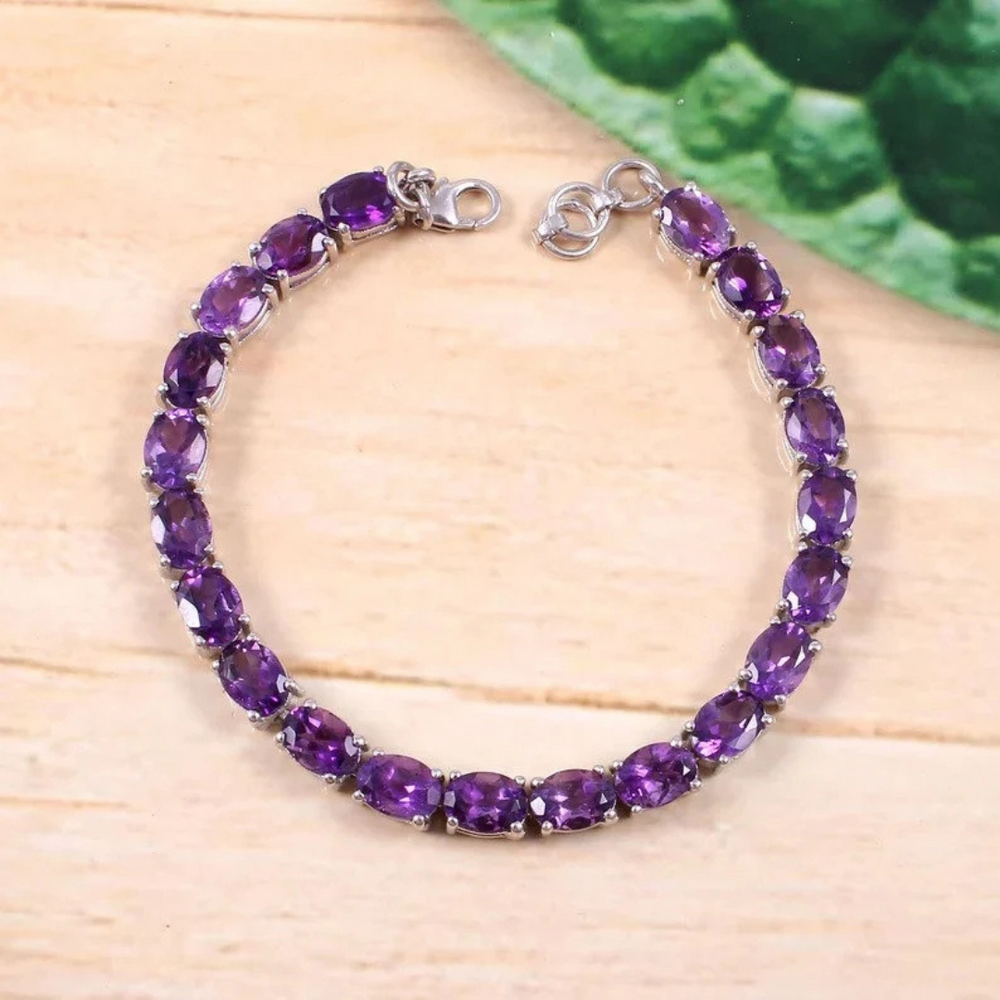 Purple Amethyst Bracelet 18K White Gold Peridot Gemstone Bracelet Minimalist Bracelet Handmade Special Gift For Her