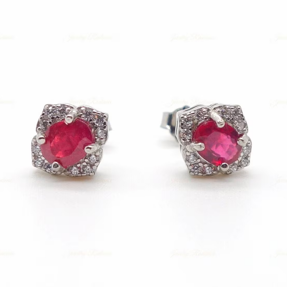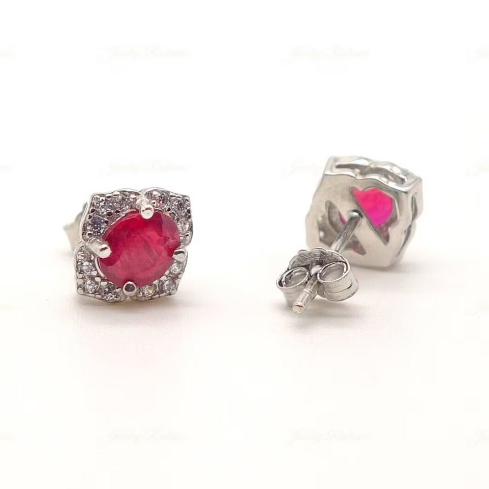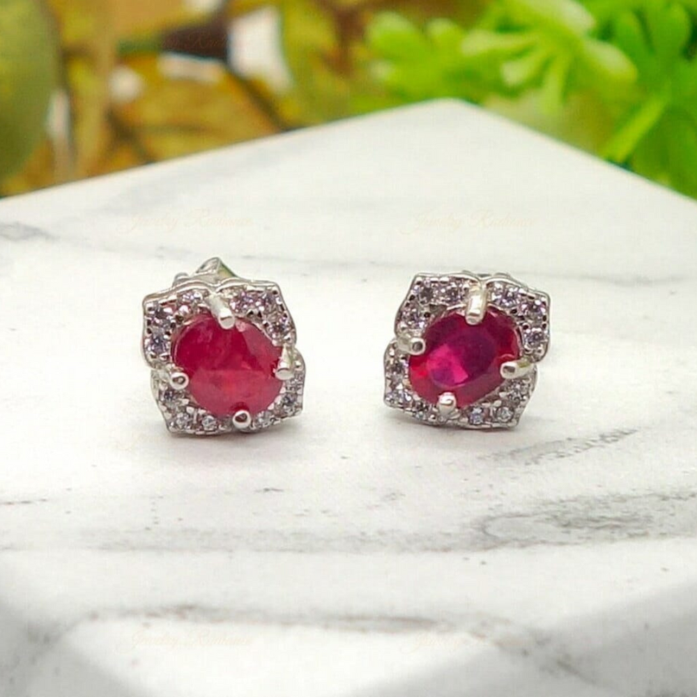 Red Garnet Earring 18kWhite Gold Earring Red Garnet And Moissanite Gemstone Earring Gold Special Jewelry Gift