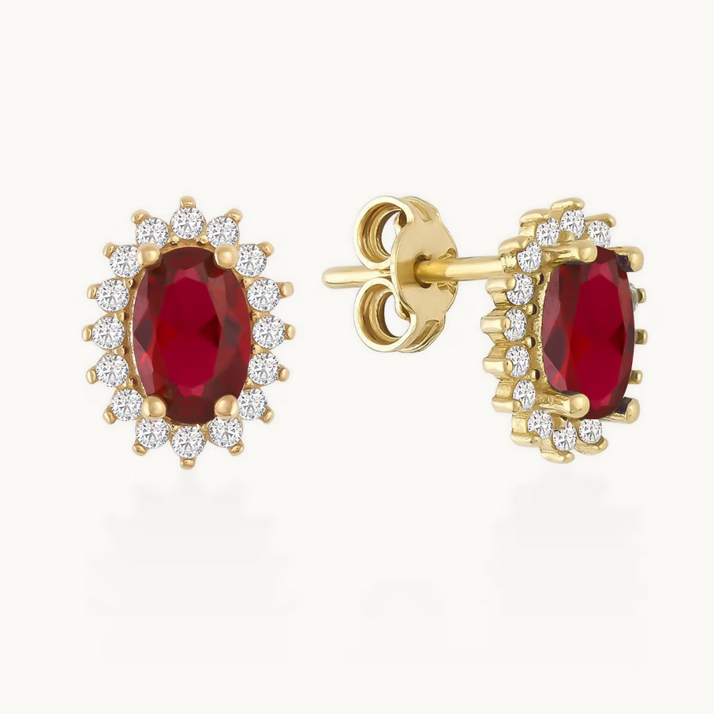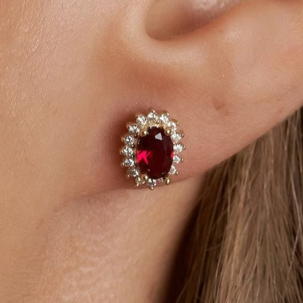 Red Garnet Earring, White Moissanite Earring, 18k Gold Stud Earring Gemstone Earring Special Gift For Her