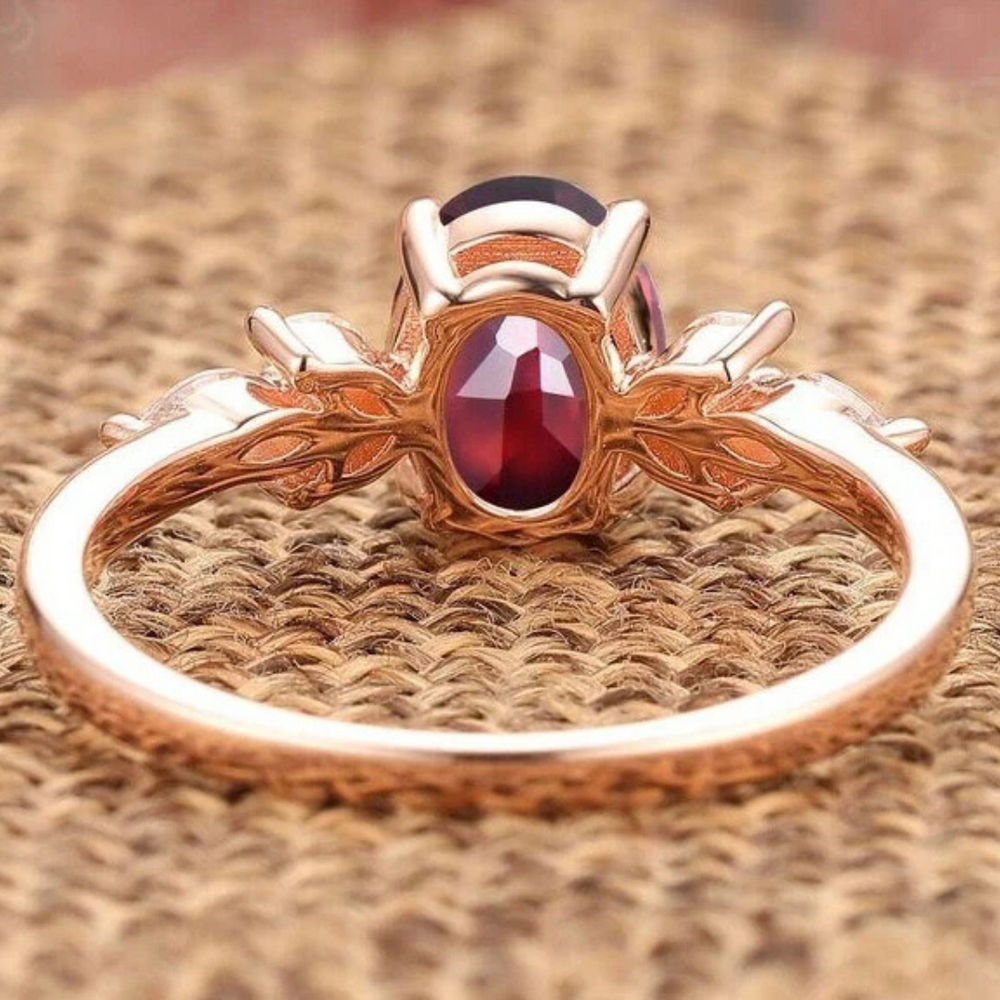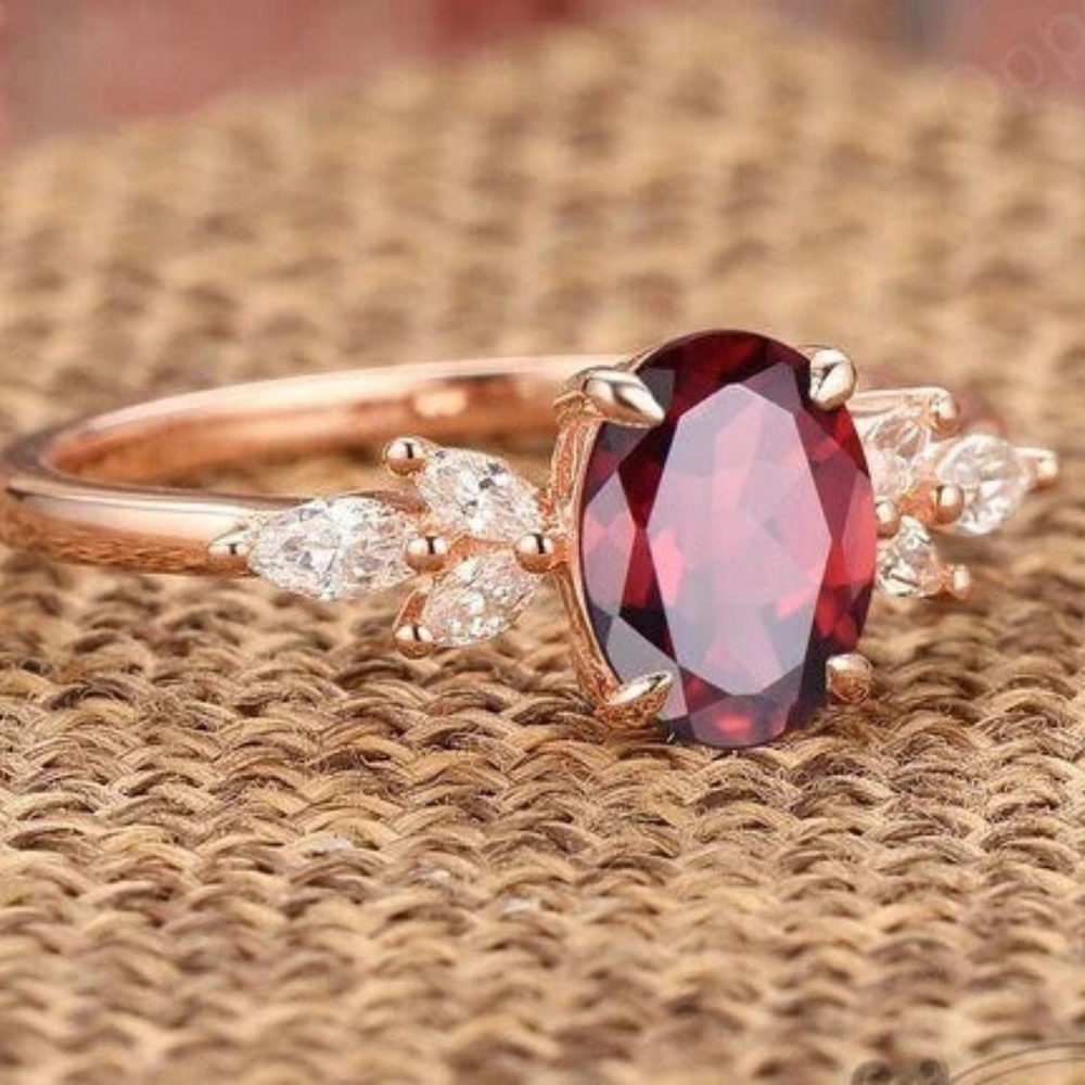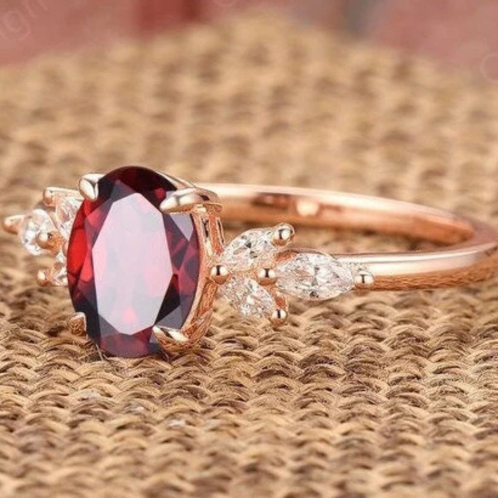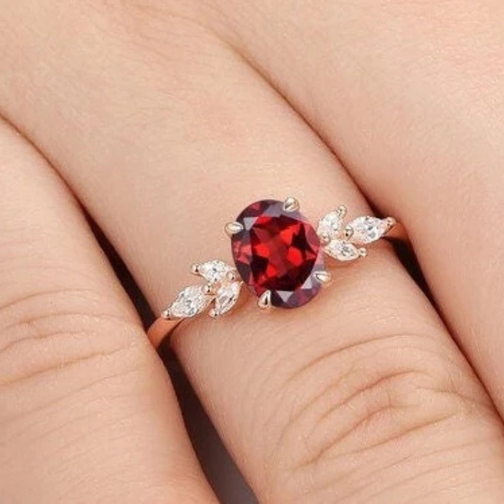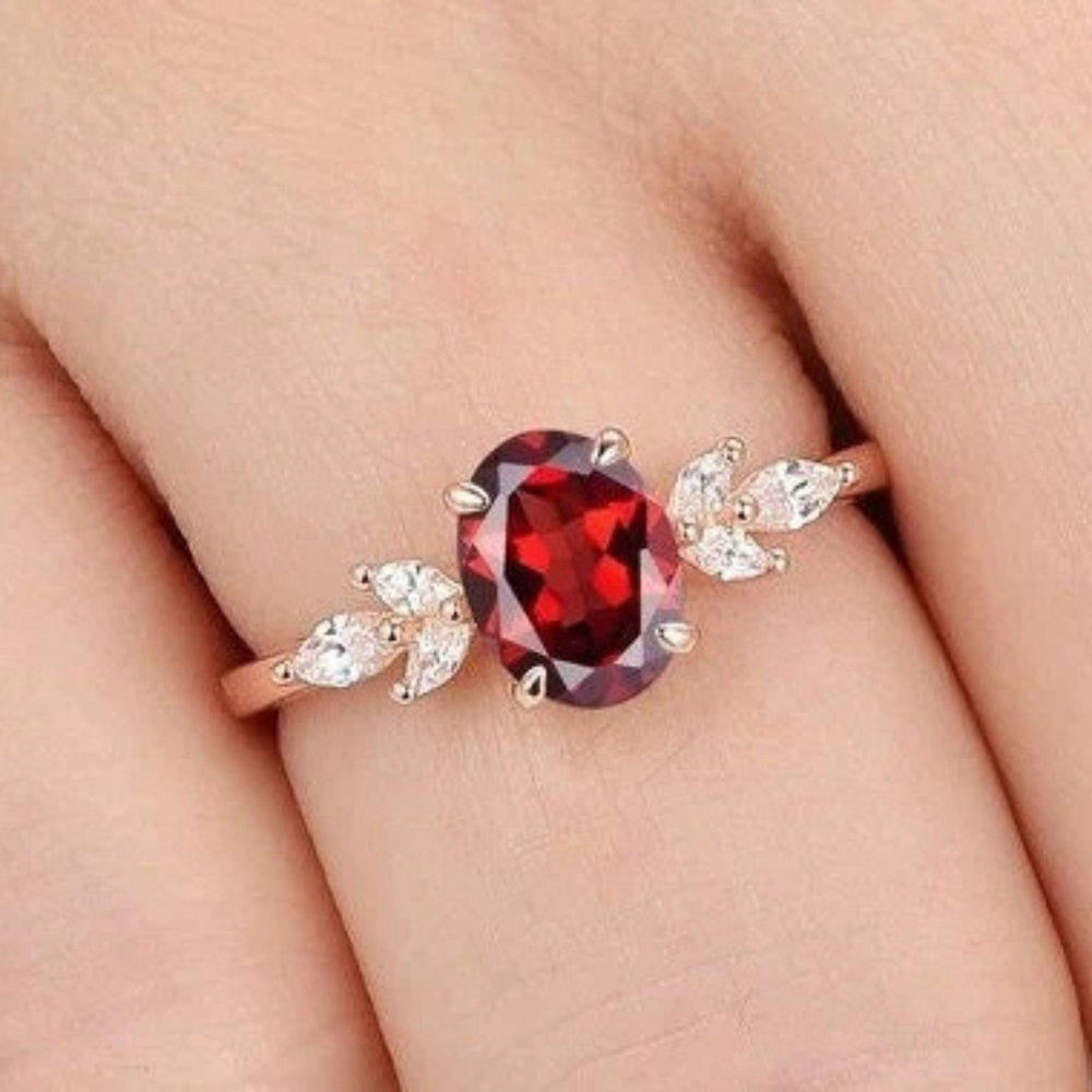 Red Garnet Ring, 18k Rose Gold Ring, Garnet And Moissanite Gemstone Ring Handmade Beautiful Jewelry