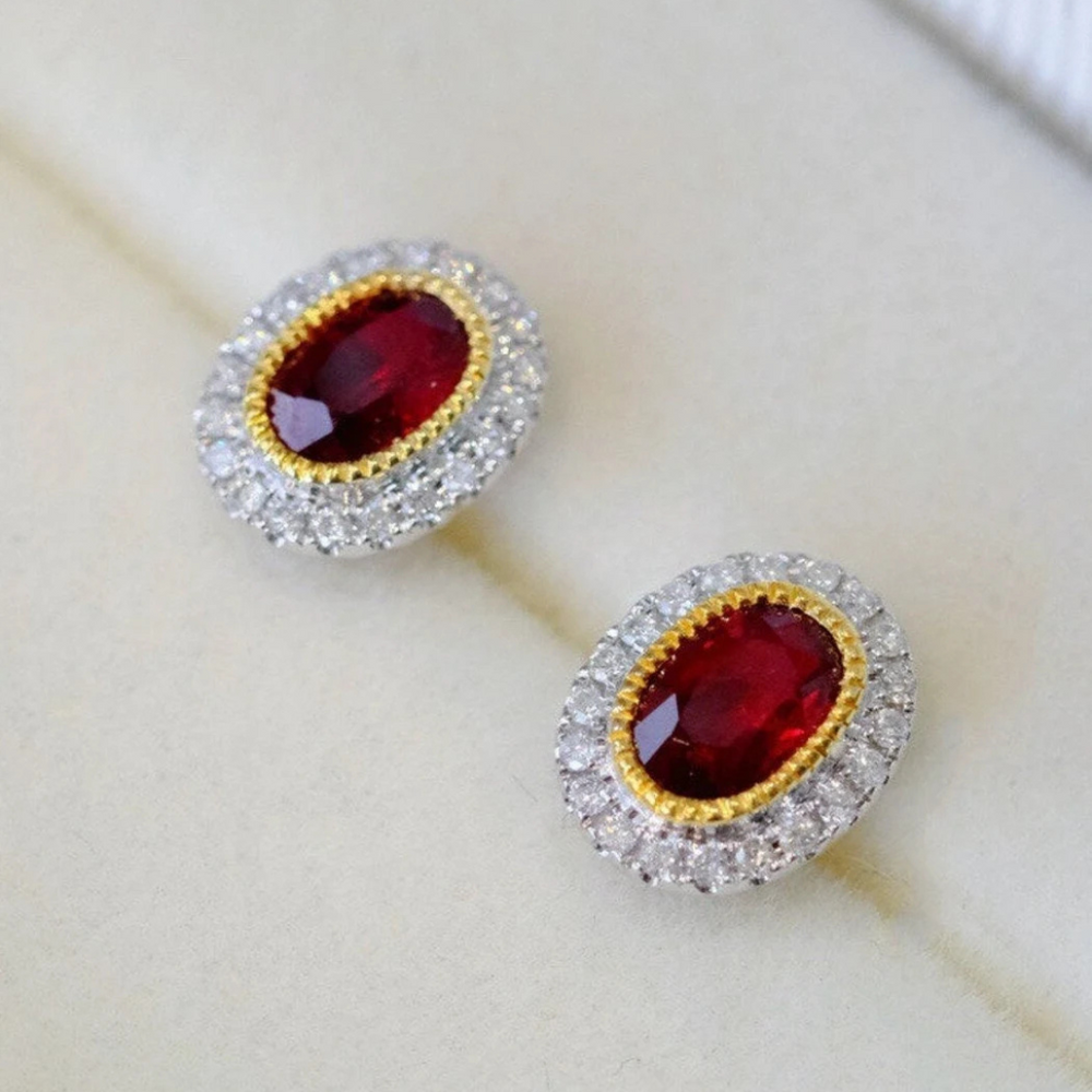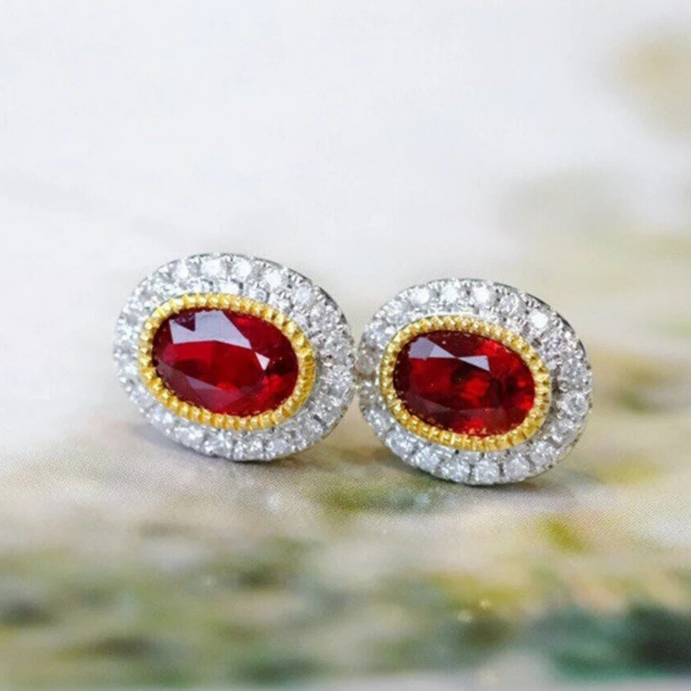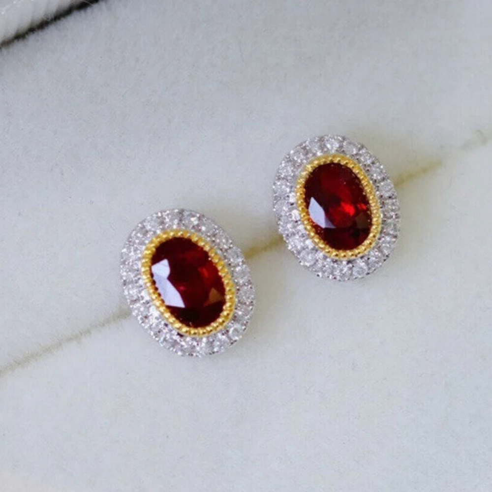Red Garnet Stud Earrings, Gold Earrings, Garnet Gemstone Earring Special Gold Jewelry For Her
