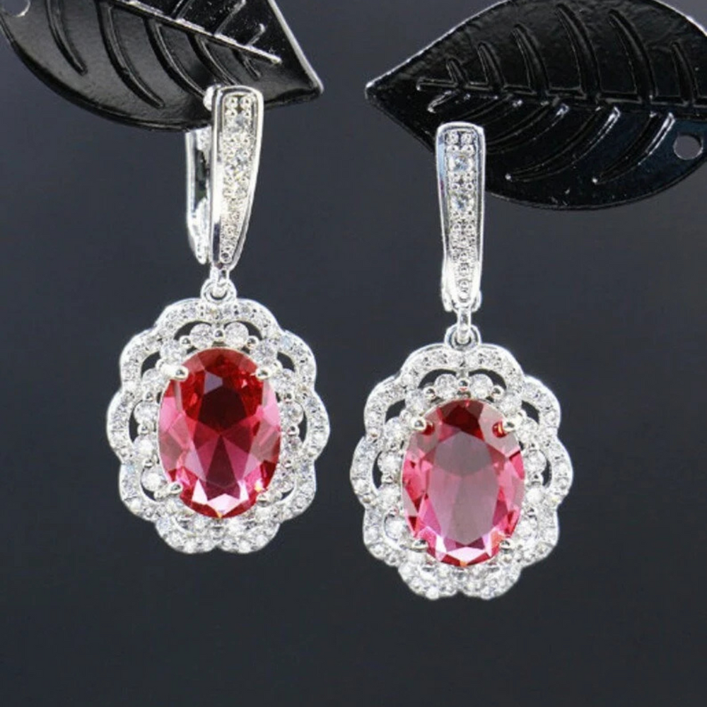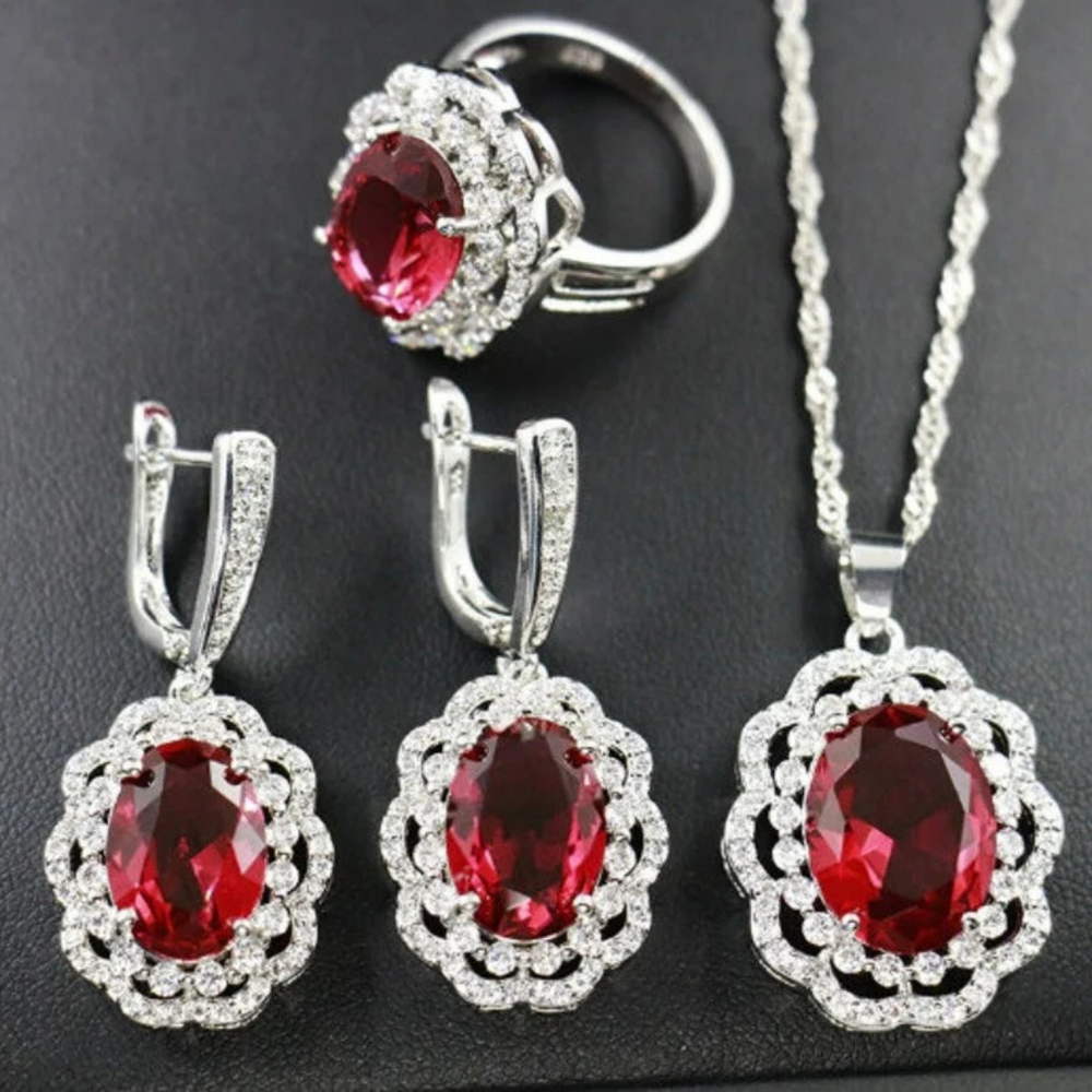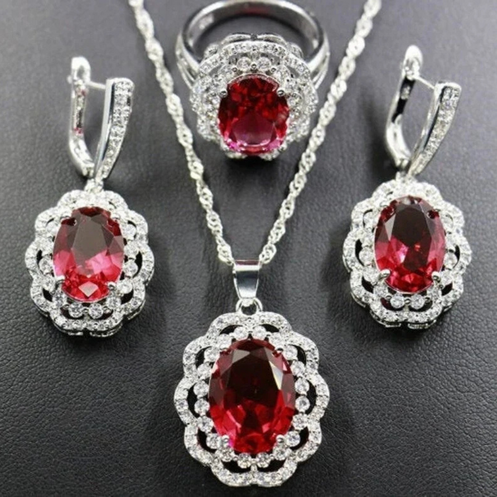 Rhodolite And Moissanite Jewelry Set 18k Gold Jewelry Set Ring, Pendant, Earing Gemstone Jewelry Set