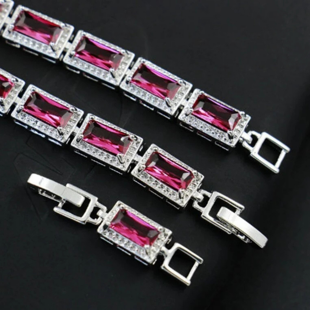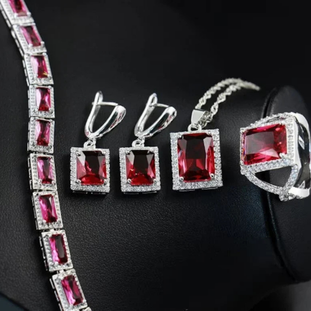 Rhodolite And Moissanite Jewelry Set 18k Gold Jewelry Set Ring, Pendant, Earing, Bracelet Gemstone Jewelry Set Special