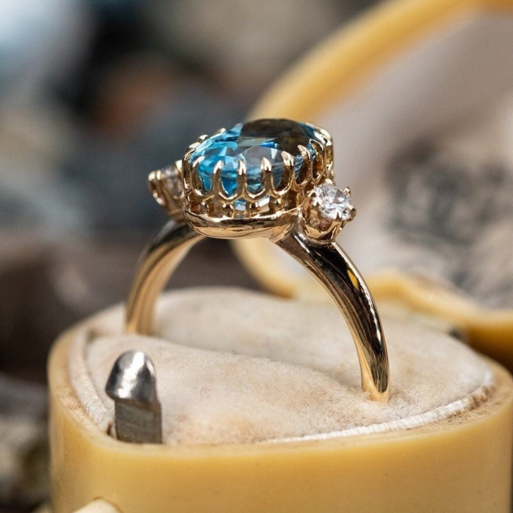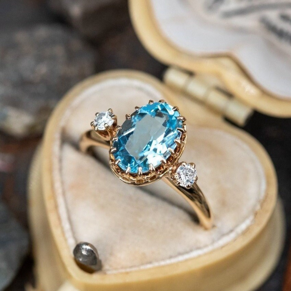 Sky Blue Topaz Gold Ring, Natural Gemstone Ring, Handmade Special For Women
