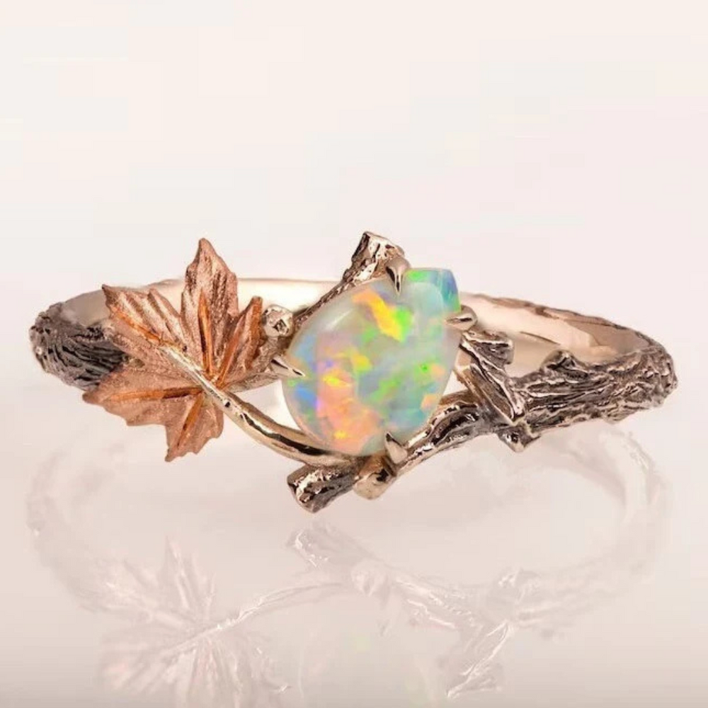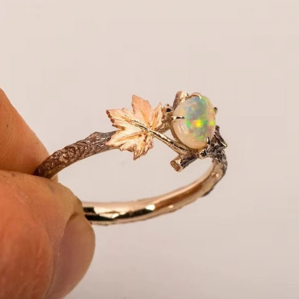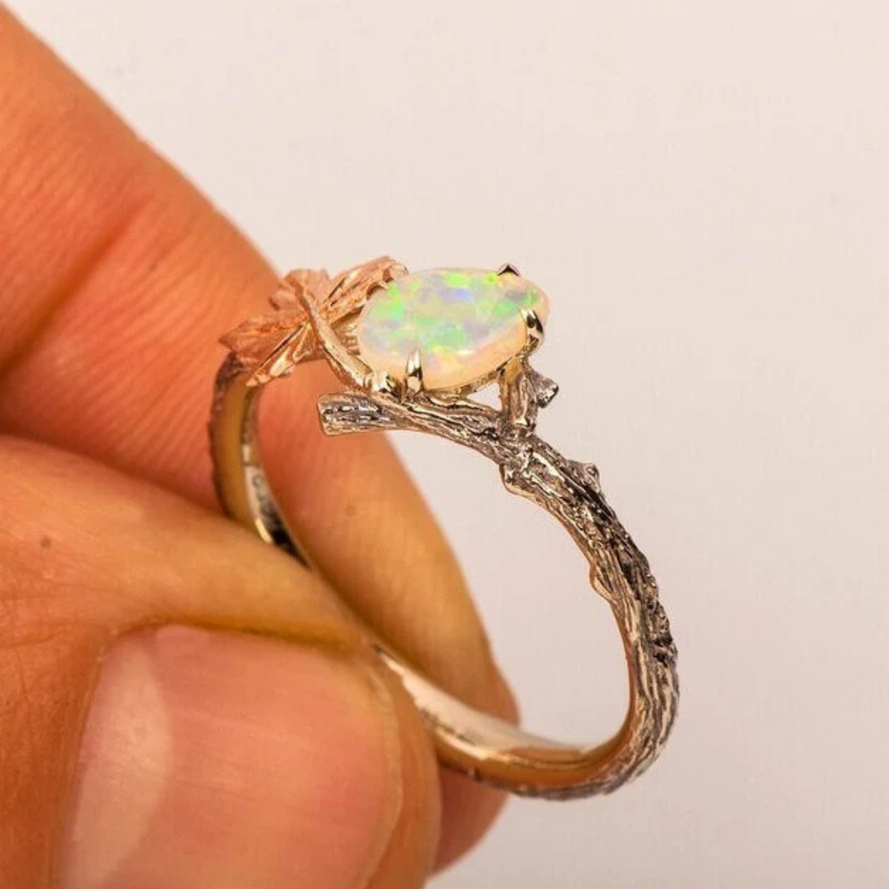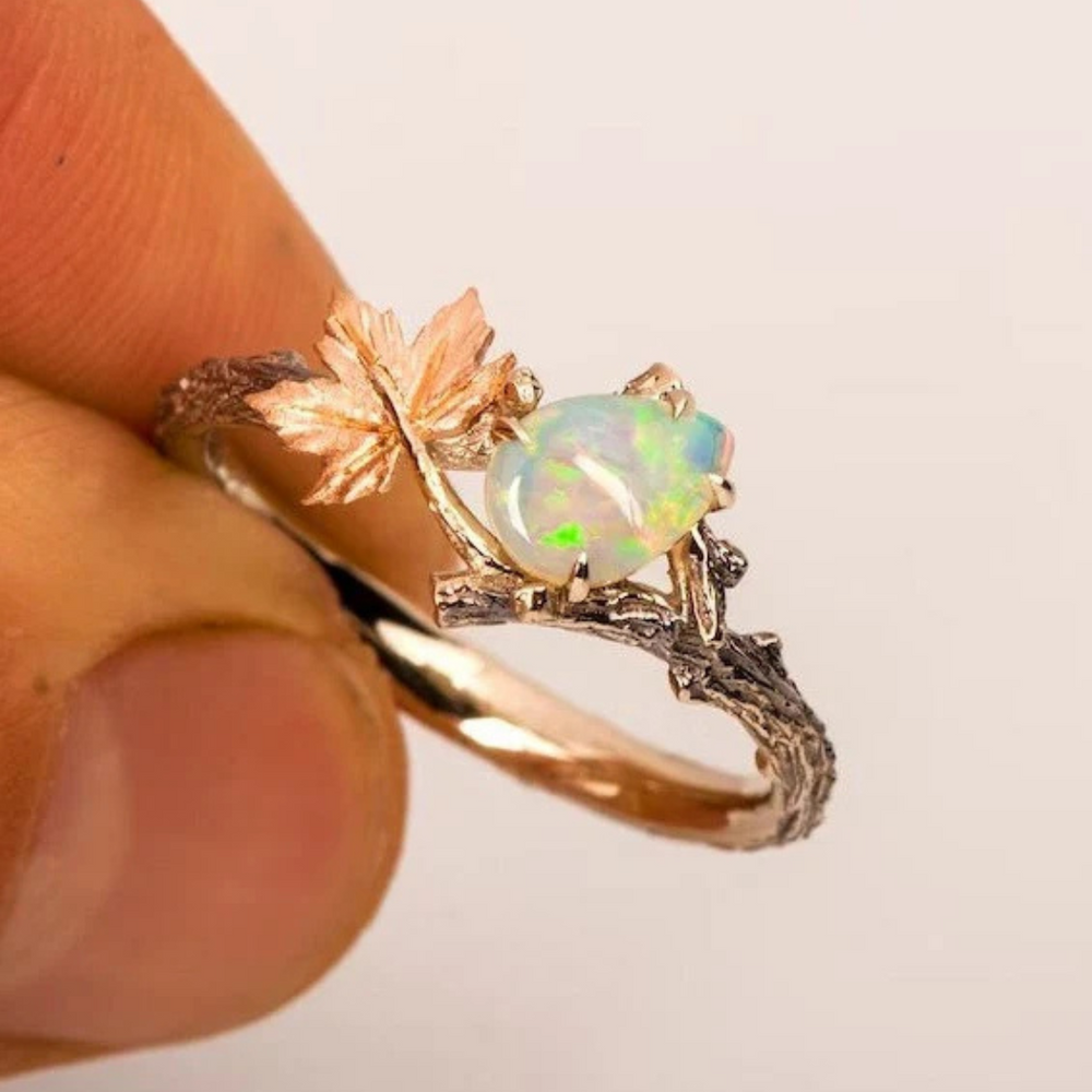 Tree Design Opal Ring, Gold Ring, Gemstone Ring, Special Tree And Leaf Design Gorgeous