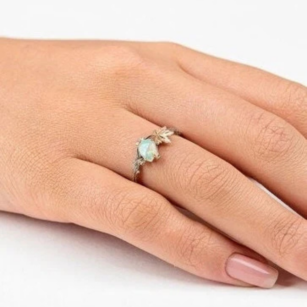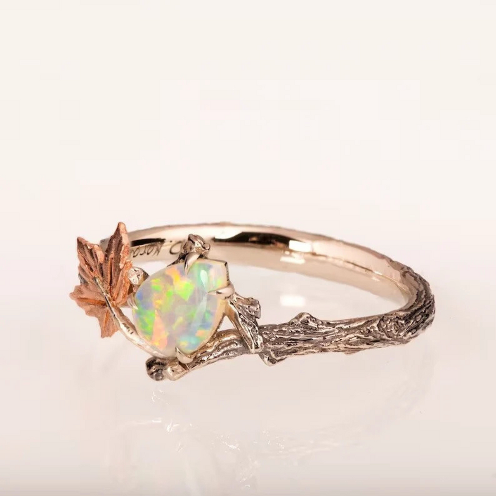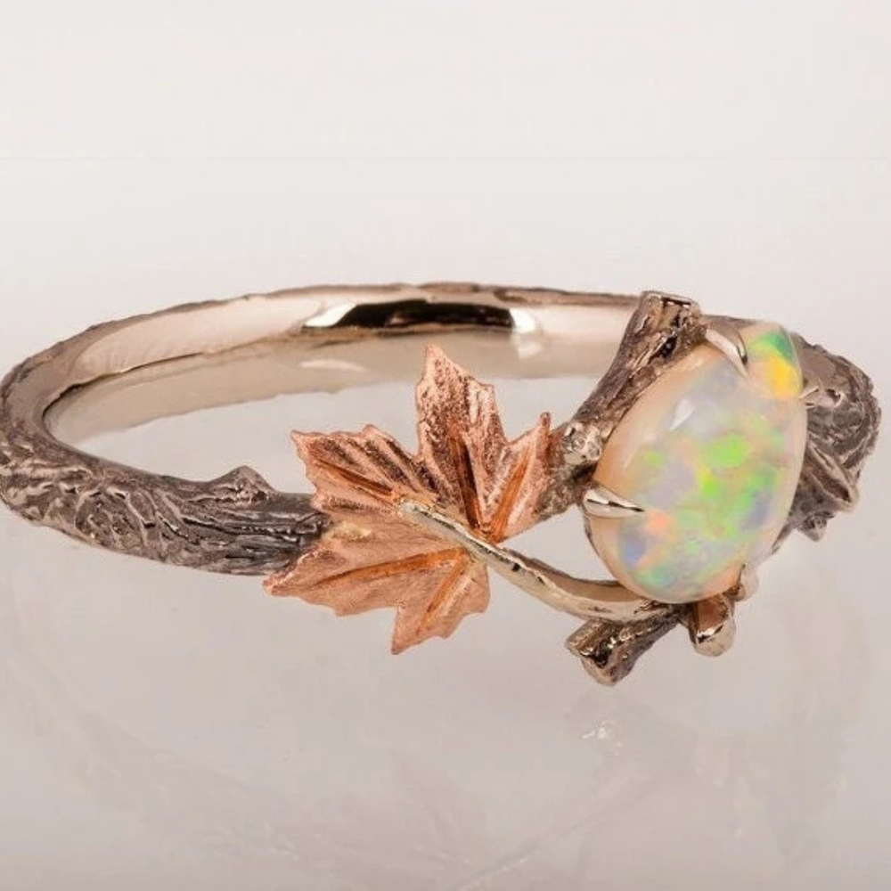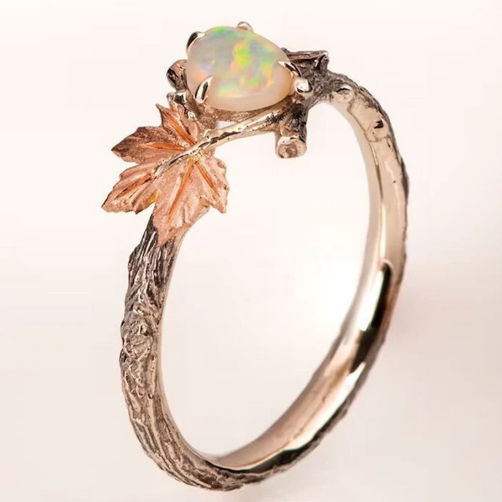 Tree Design Opal Ring, Gold Ring, Gemstone Ring, Special Tree And Leaf Design Gorgeous