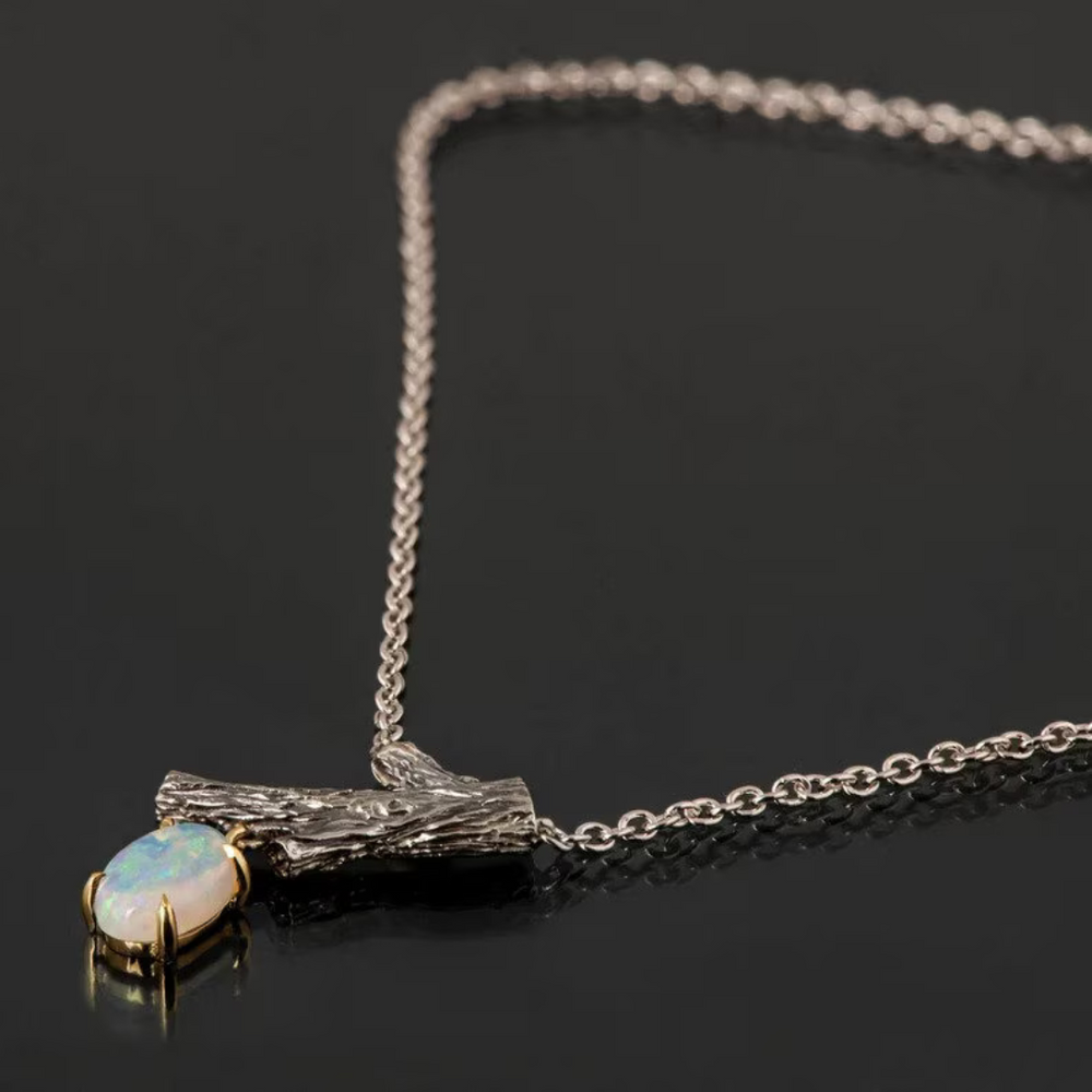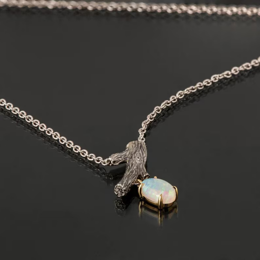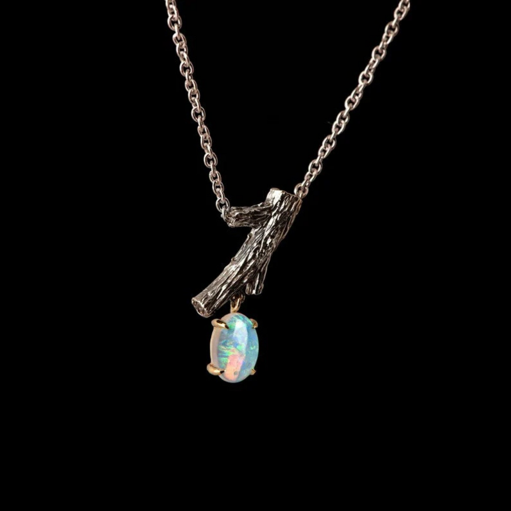 Tree Leaf Design Opal Pendant, Gold Pendant, Tourmaline Gemstone Pendant Special Jewelry