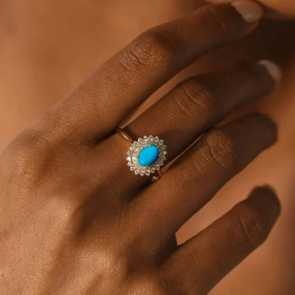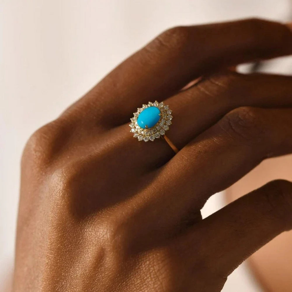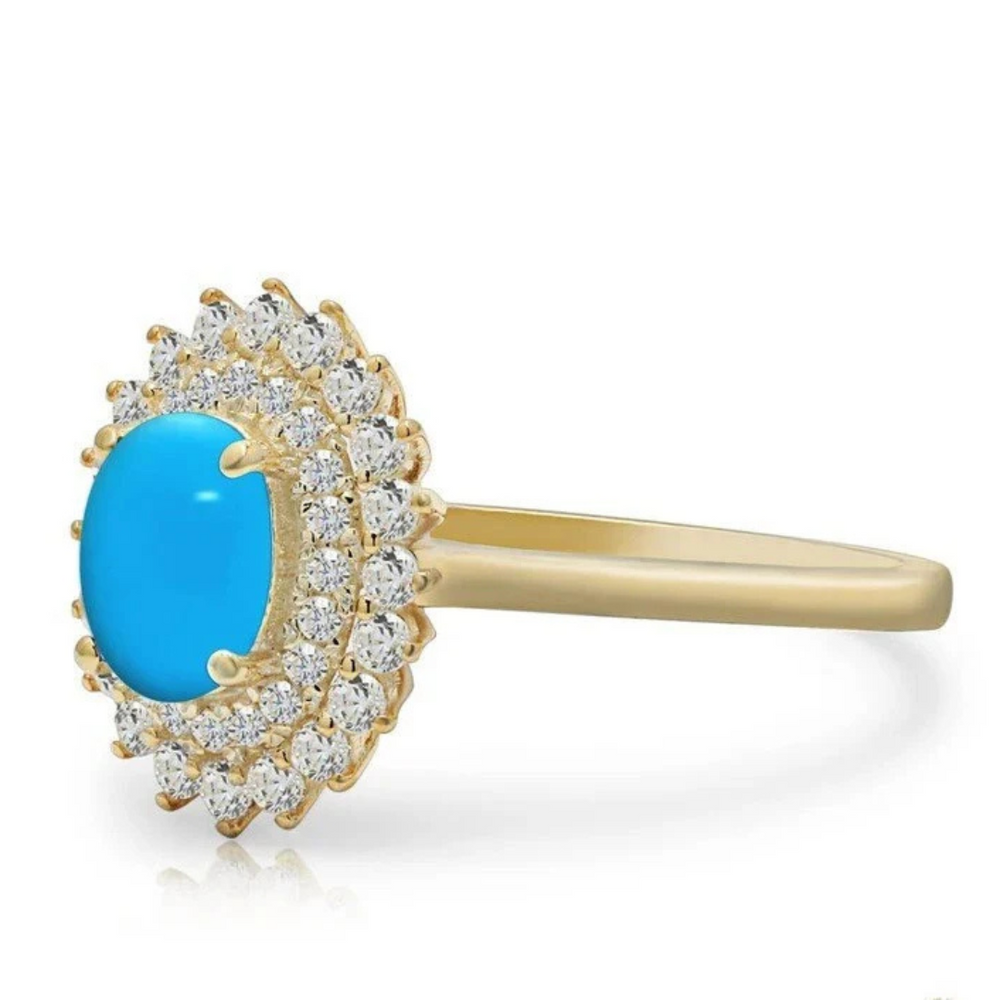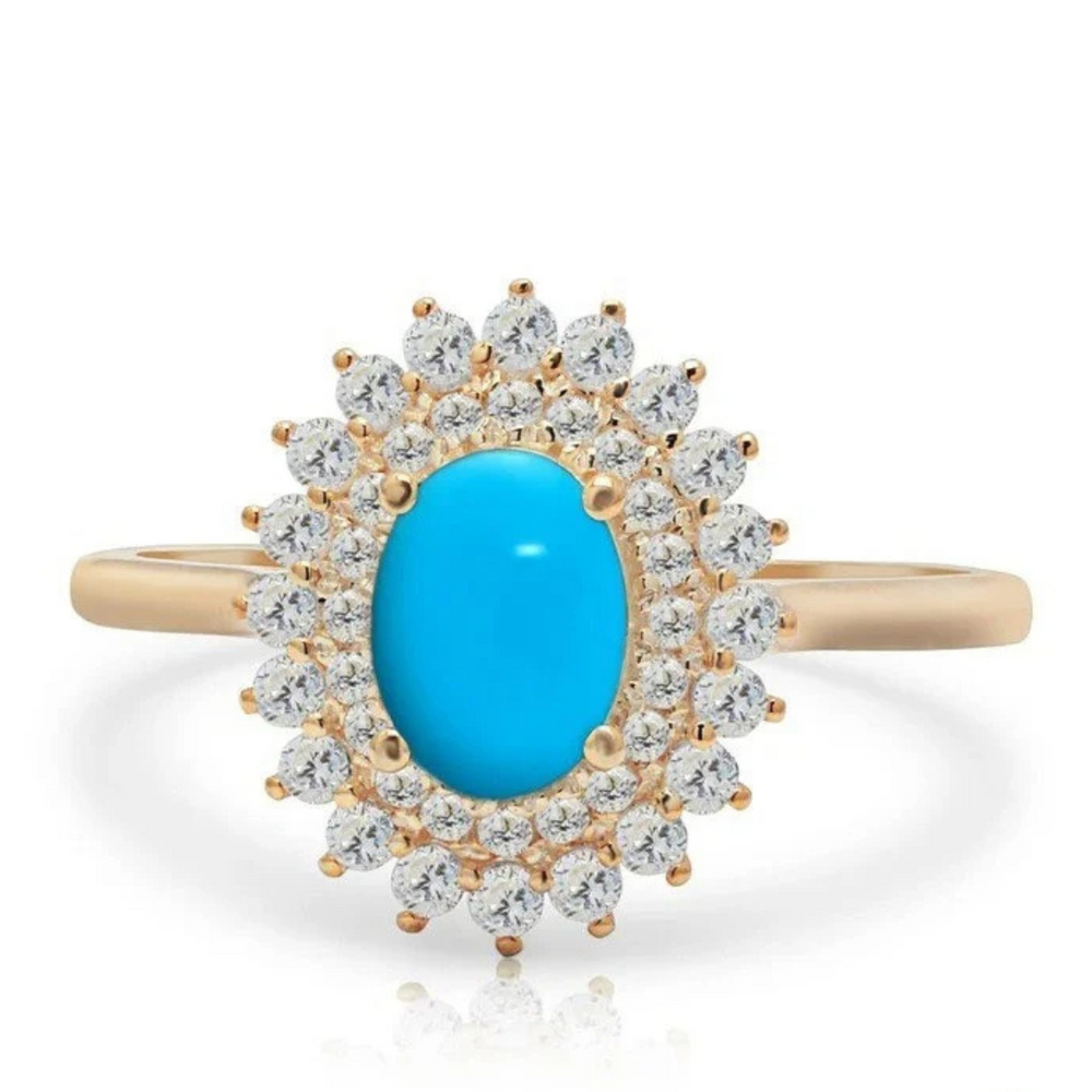 Turquois Ring, Gold Ring, Turquoise And Moissanite Gemstone Ring Gorgeous Handmade Special Wedding Jewelry