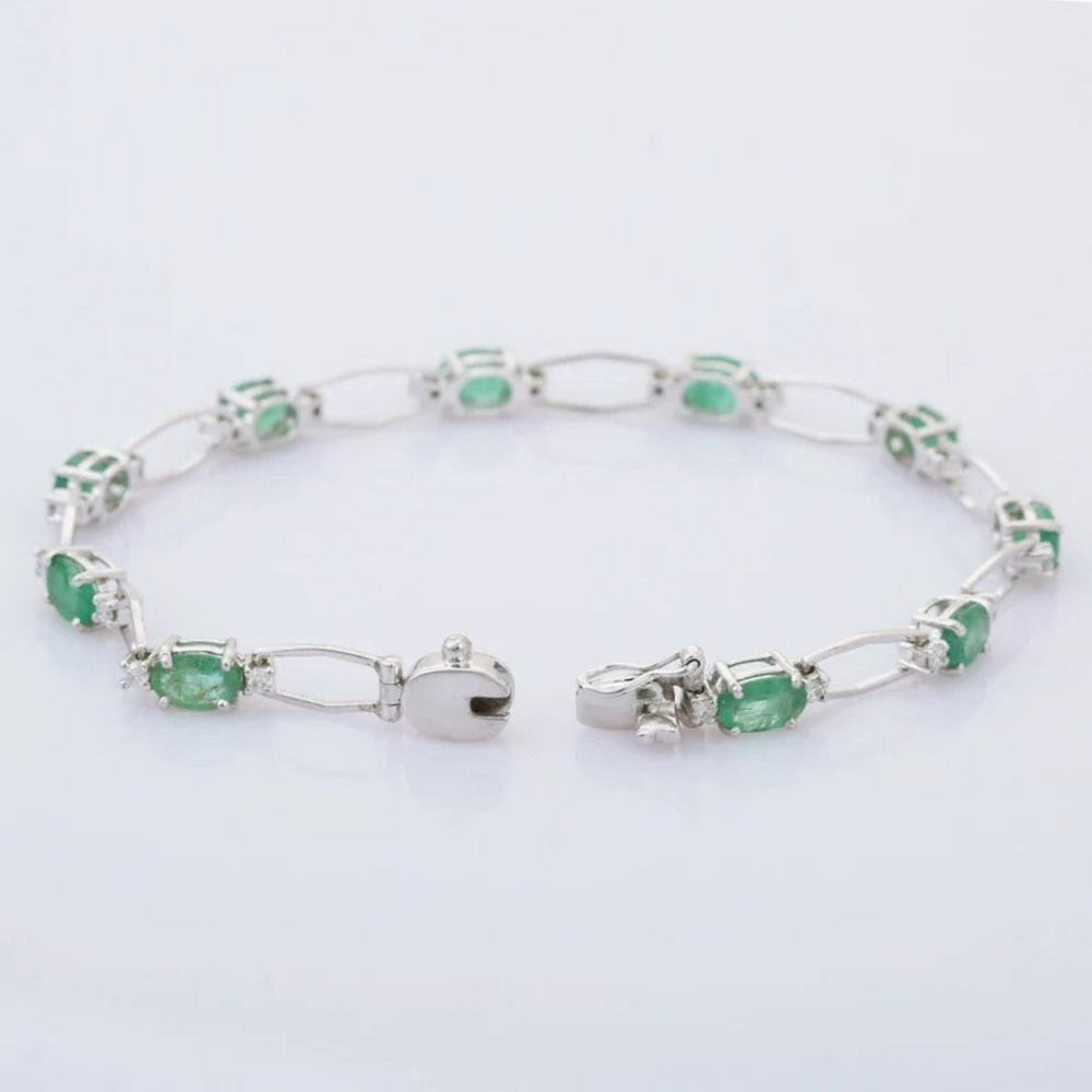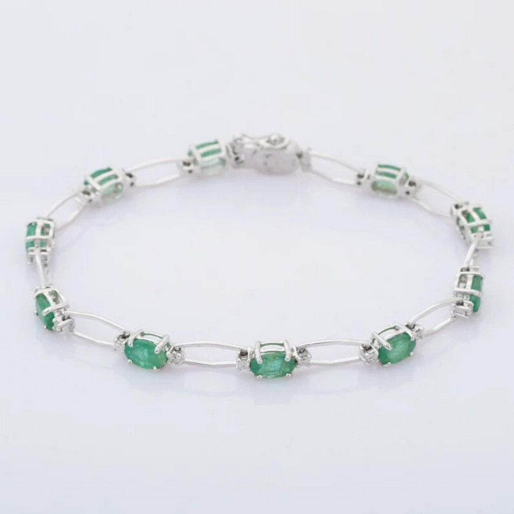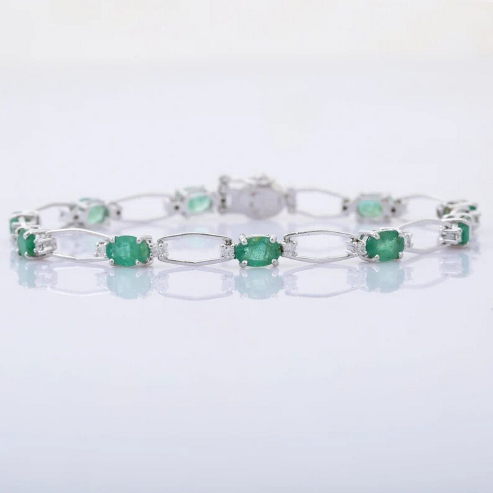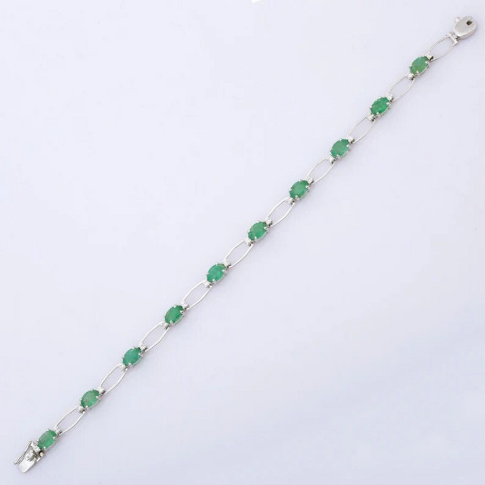 Zambian Emerald Bracelet 18K White Gold Bracelet Zambian Emerald with Moissanite Gemstone Bracelet Tennis Special Jewelry Gift